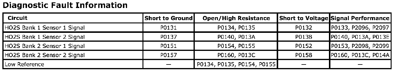 ^ Before the ECM can report that P013A, P013C, P013E, or P014A failed, DTCs P0030, P0031, P0032, P0050, P0051, P0052, P0135, and P0155 must run and pass.