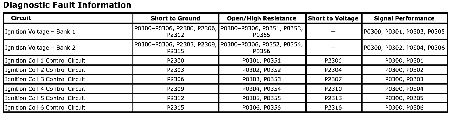 DTC P2316 Ignition Coil 6 Control Circuit High Voltage