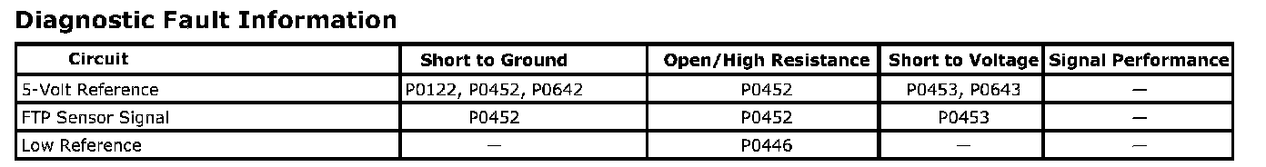 DTC P0452 Fuel Tank Pressure (FTP) Sensor Circuit Low Voltage