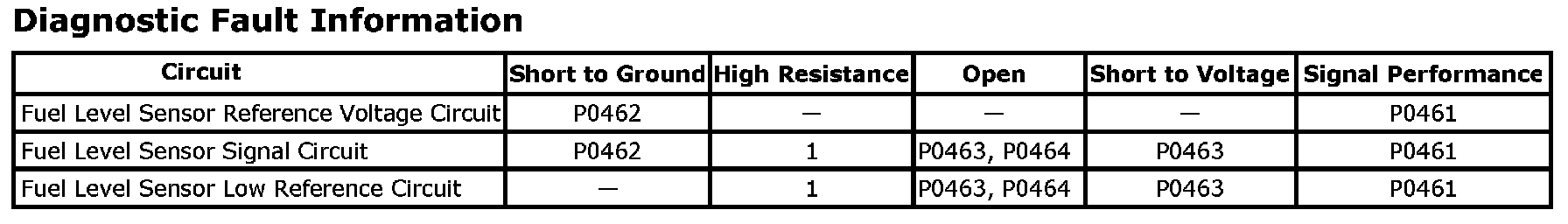 DTC P0462 Fuel Level Sensor Circuit Low Voltage