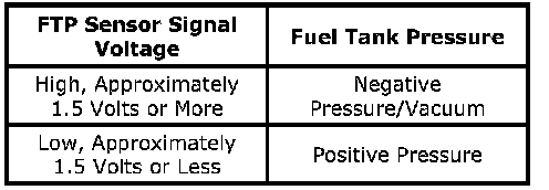 This DTC tests for continuous intake manifold vacuum flow to the Evaporative Emission (EVAP) System. The control module seals the EVAP system by commanding the EVAP canister purge solenoid valve Closed and the EVAP canister vent solenoid valve Closed. The control module monitors the fuel tank pressure (FTP) sensor to determine if a vacuum is being drawn on the EVAP system. If vacuum in the EVAP system is more than a predetermined value within a predetermined time, this DTC sets.