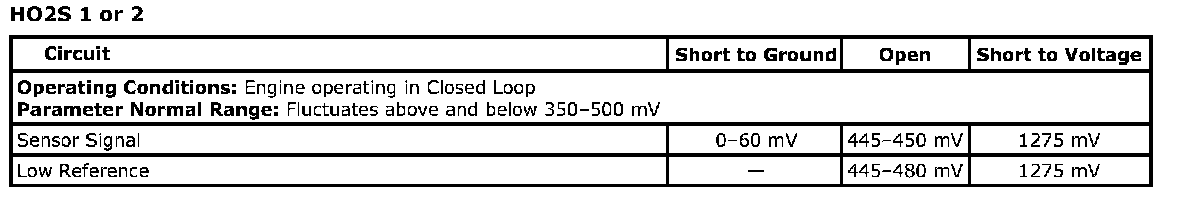 Fuel trim bias is used by the ECM to keep the post catalyst HO2S voltage within a range of 580-665 mV. This allows optimal catalyst efficiency under light load conditions, such as at idle or a steady cruise. The ECM constantly monitors how lean or rich the fuel trim bias is commanded, to determine if the fuel trim bias is greater than a calibrated amount. The HO2S utilizes the following circuits: