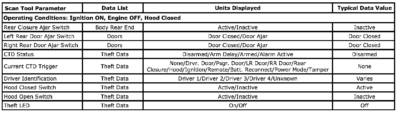 Scan Tool Data List - Theft Deterrent: