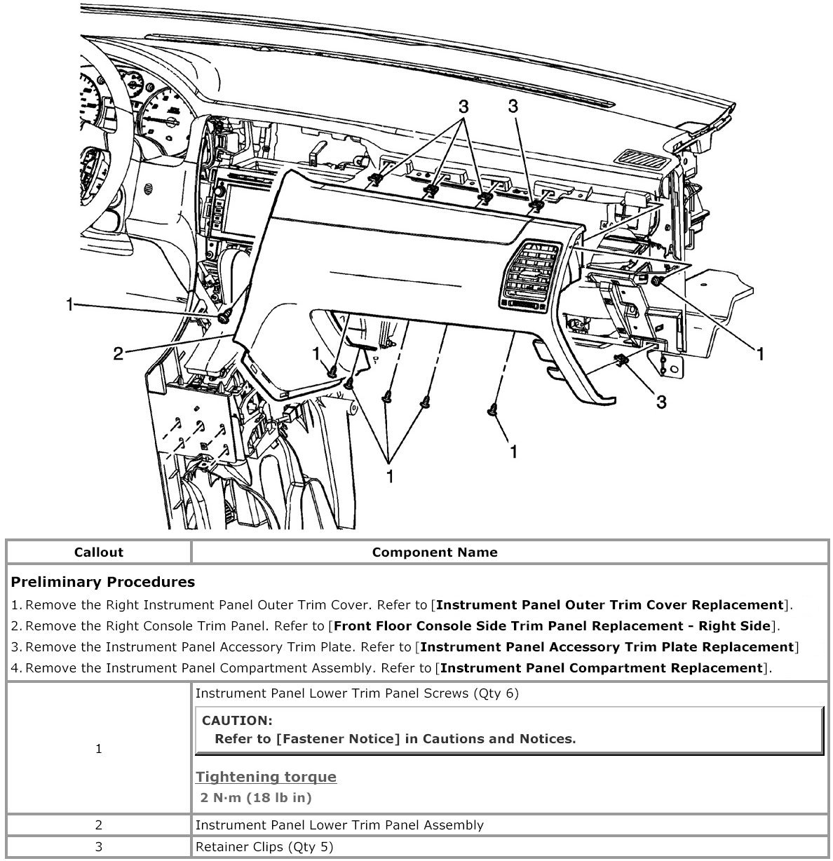 Instrument Panel Lower Trim Panel Replacement - Right Side