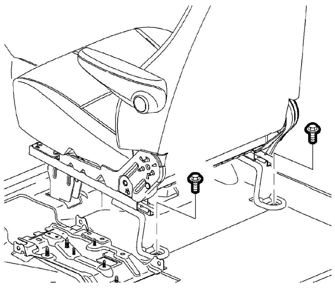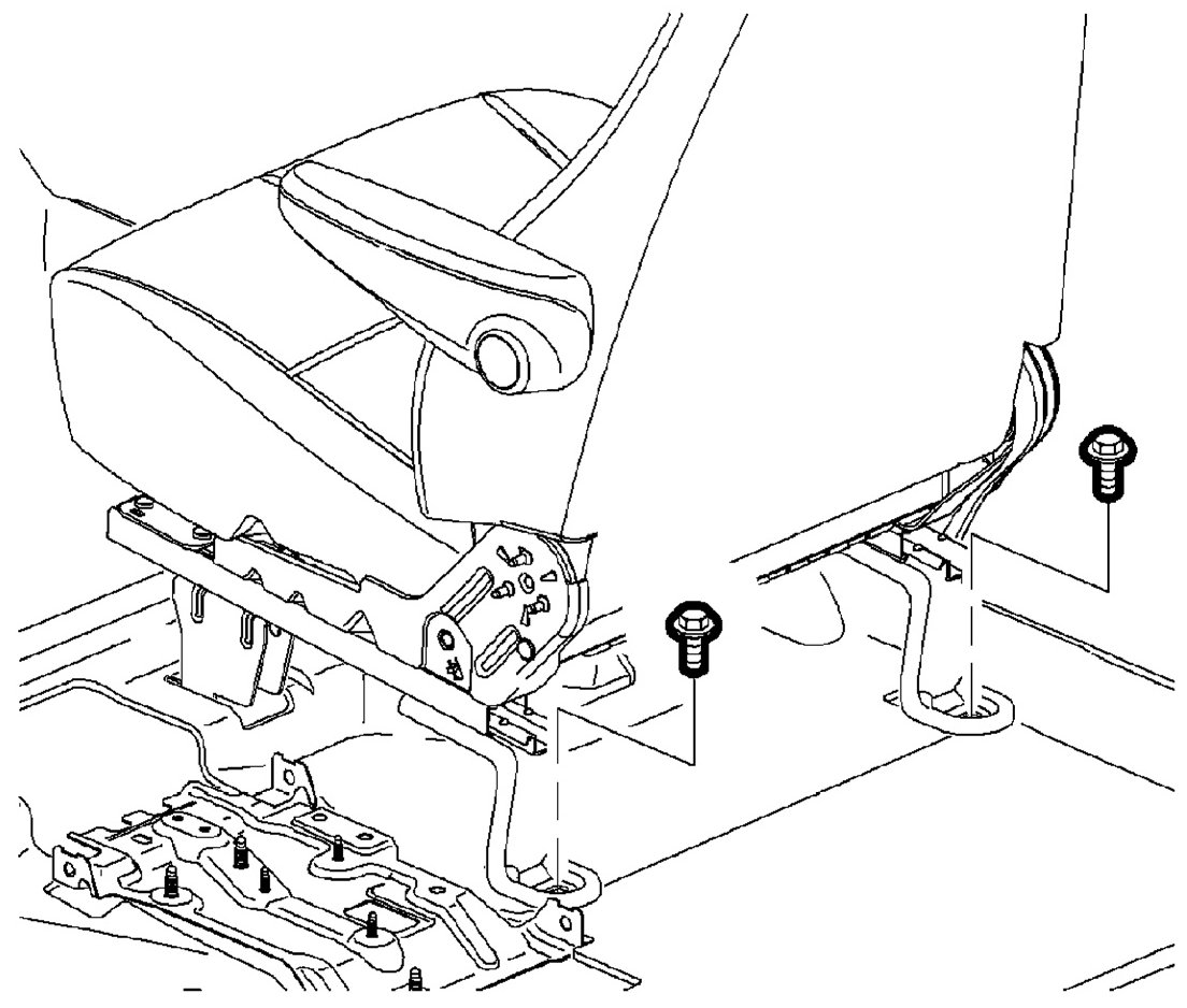 4. Position the seat in the fully forward position to expose the rear bolt locations.
