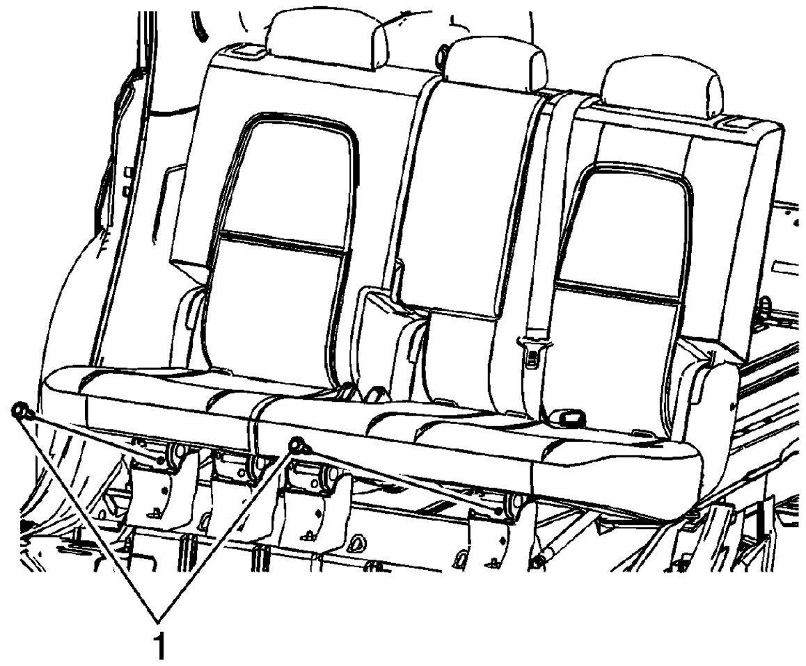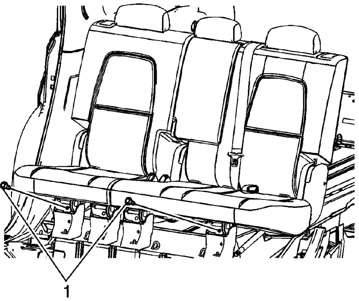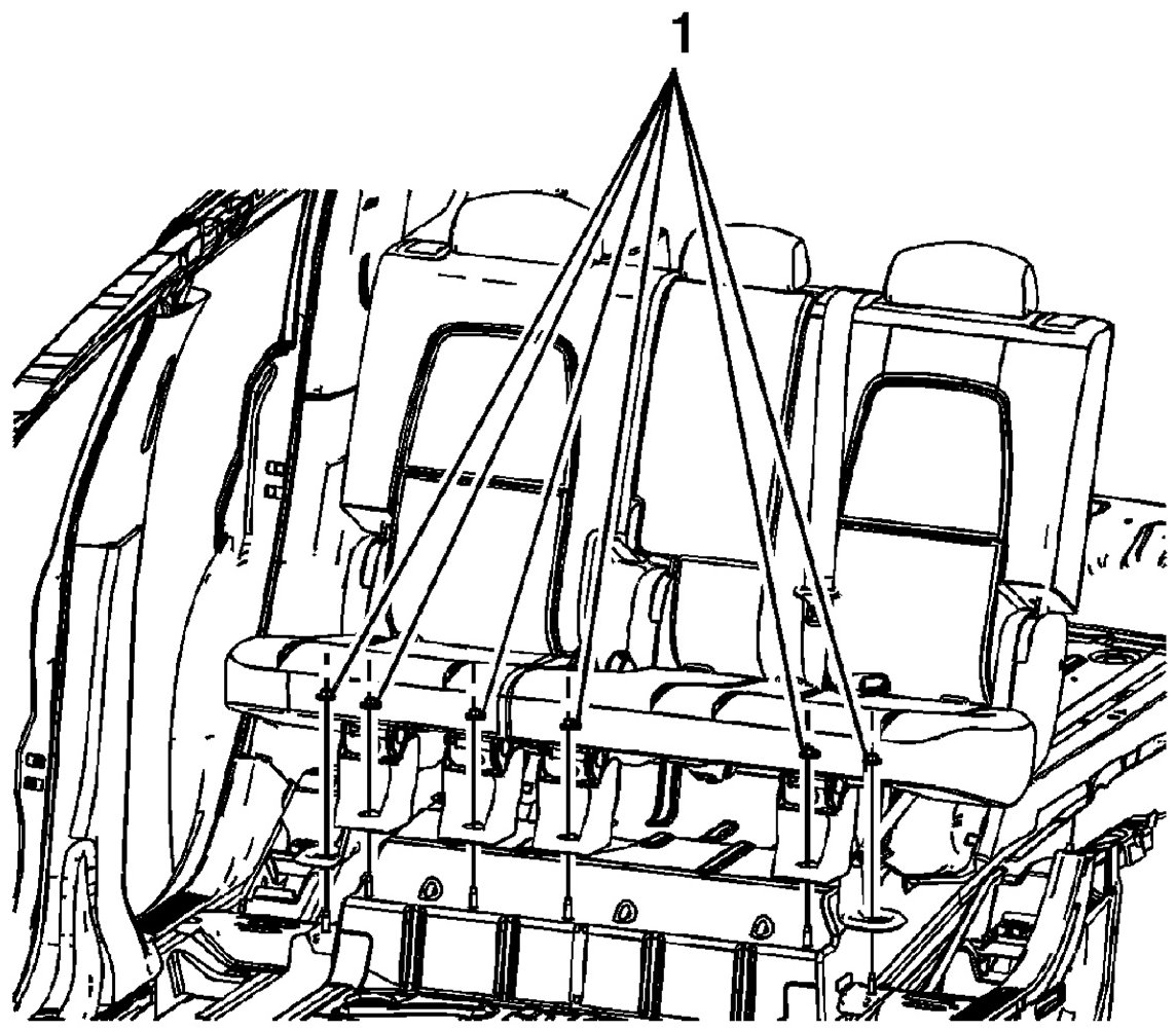 1. Install the rear seat to the vehicle, locating the seat over the studs on the floor.