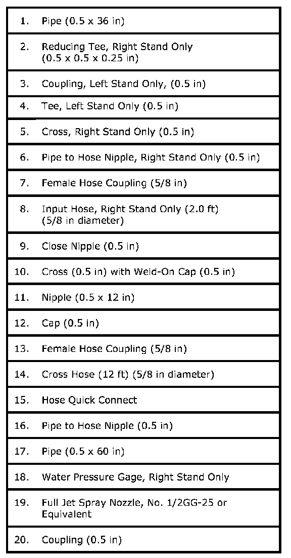 1. Assemble the water test stand as shown.