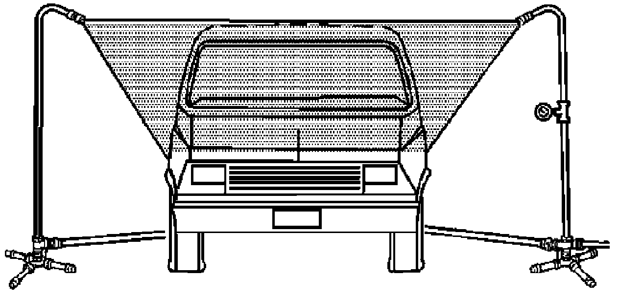 6. In order to check the side windows for leaks, position the water stand towards the center of the rear quarter, aiming the water spray 30 degrees down and 45 degrees toward the rear.