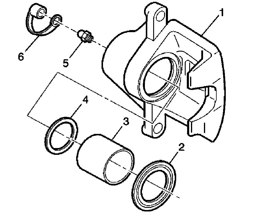 1. Inspect the brake caliper housing (1) for cracks, excess wear, and/or damage. If any of these conditions are present, the brake caliper requires replacement.