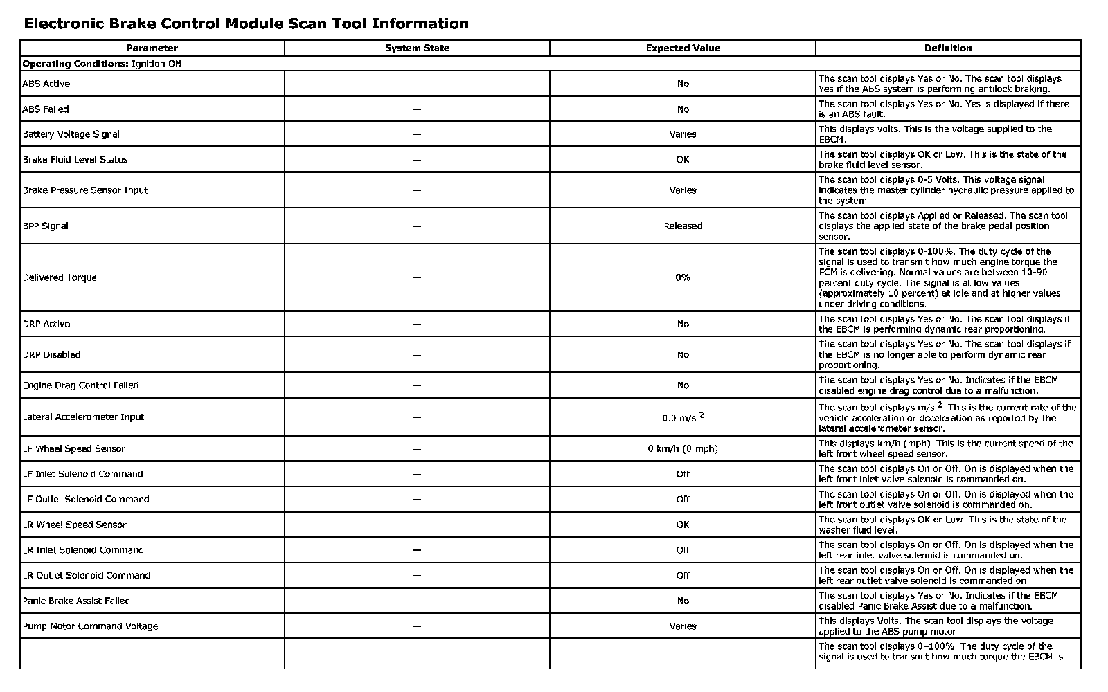 Electronic Brake Control Module Scan Tool Information