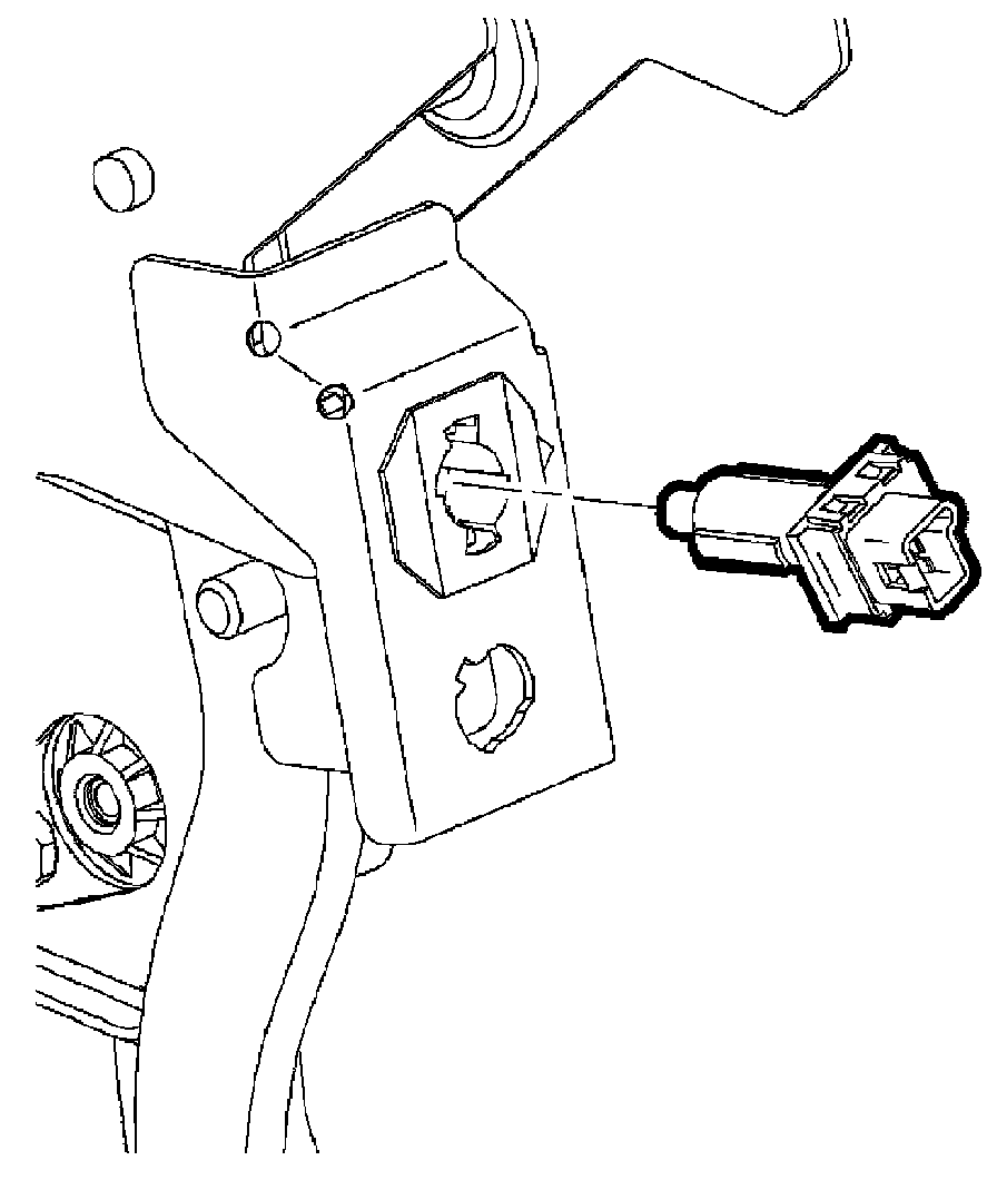 ^ Inspect the cruise brake switch to ensure the switch is properly locked into the switch retainer with the cruise brake switch electrical connector index notch pointing to the 3 o'clock position.