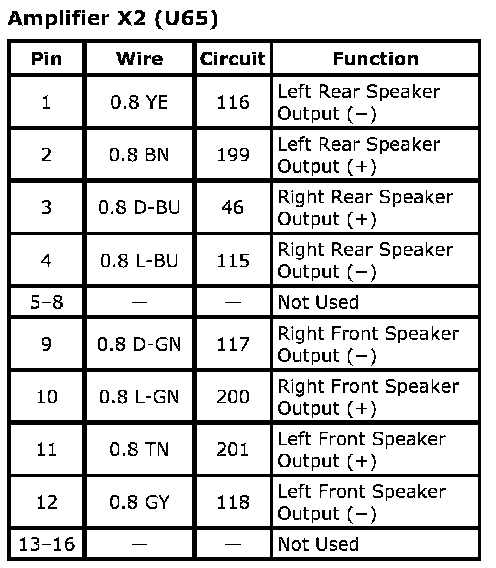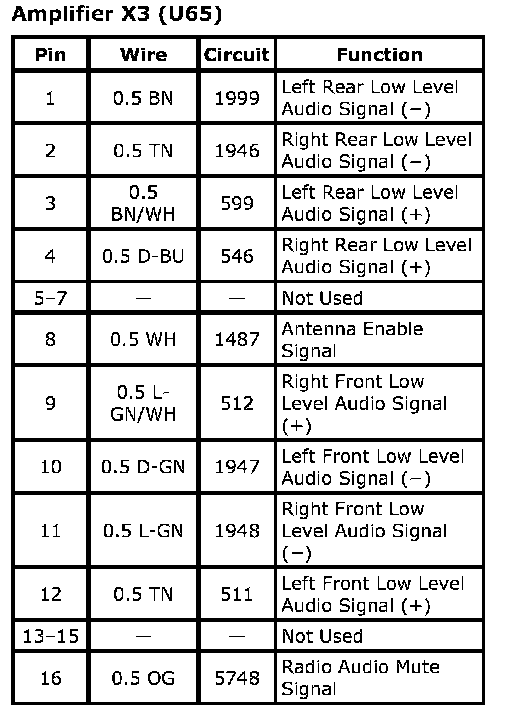 Amplifier X1 (U65)Connector Part Information