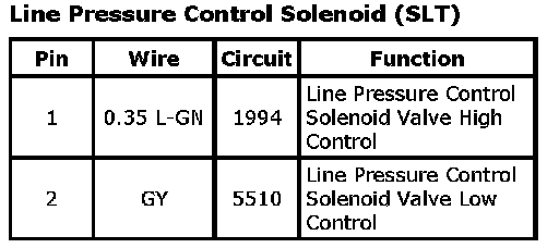 Line Pressure Control Solenoid (SLT)