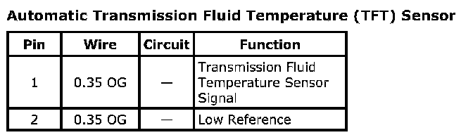 Automatic Transmission Fluid Temperature (TFT) SensorConnector Part Information