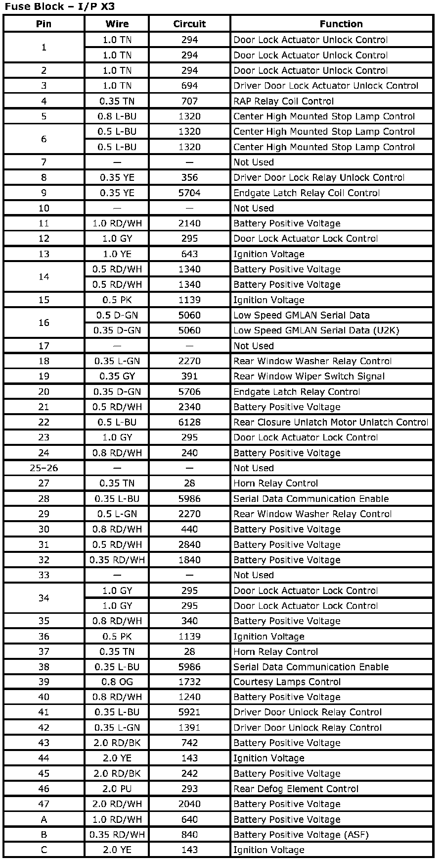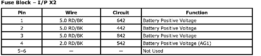 Fuse Block - I/P X1Connector Part Information