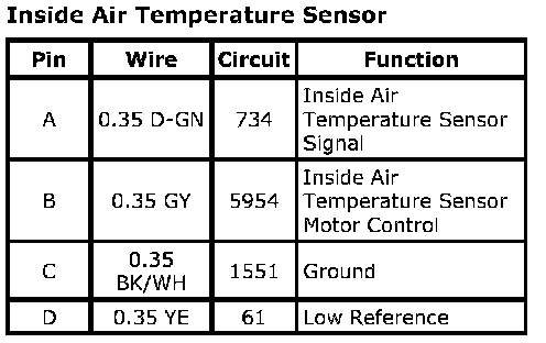 Inside Air Temperature SensorConnector Part Information