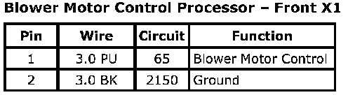 Blower Motor Control Processor - Front X1Connector Part Information