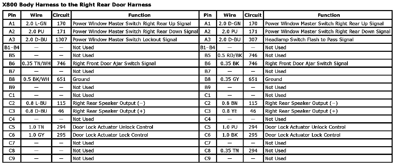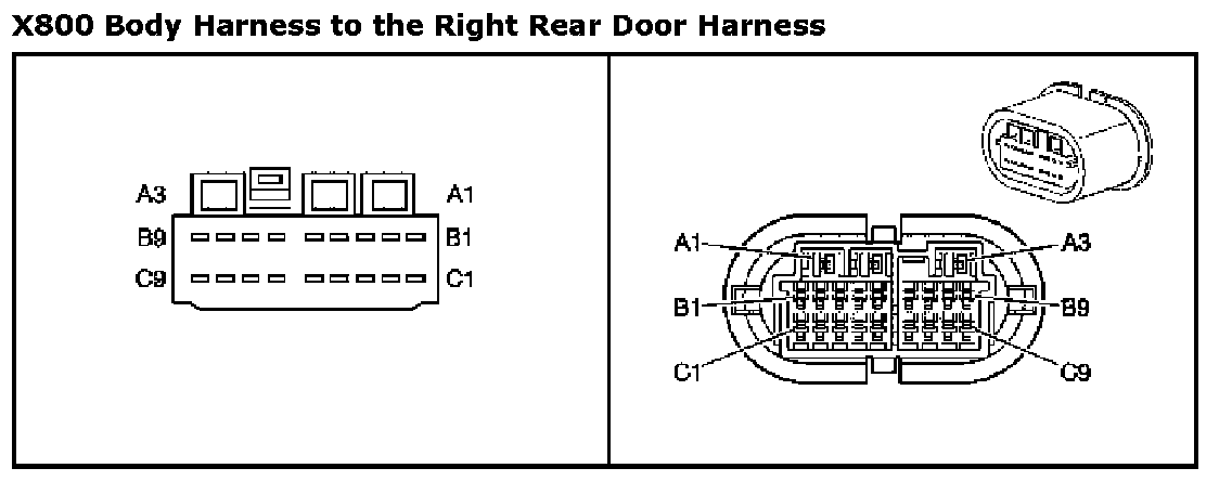 X800 Body Harness to the Right Rear Door HarnessX800 Body Harness To The Right Rear Door Harness: