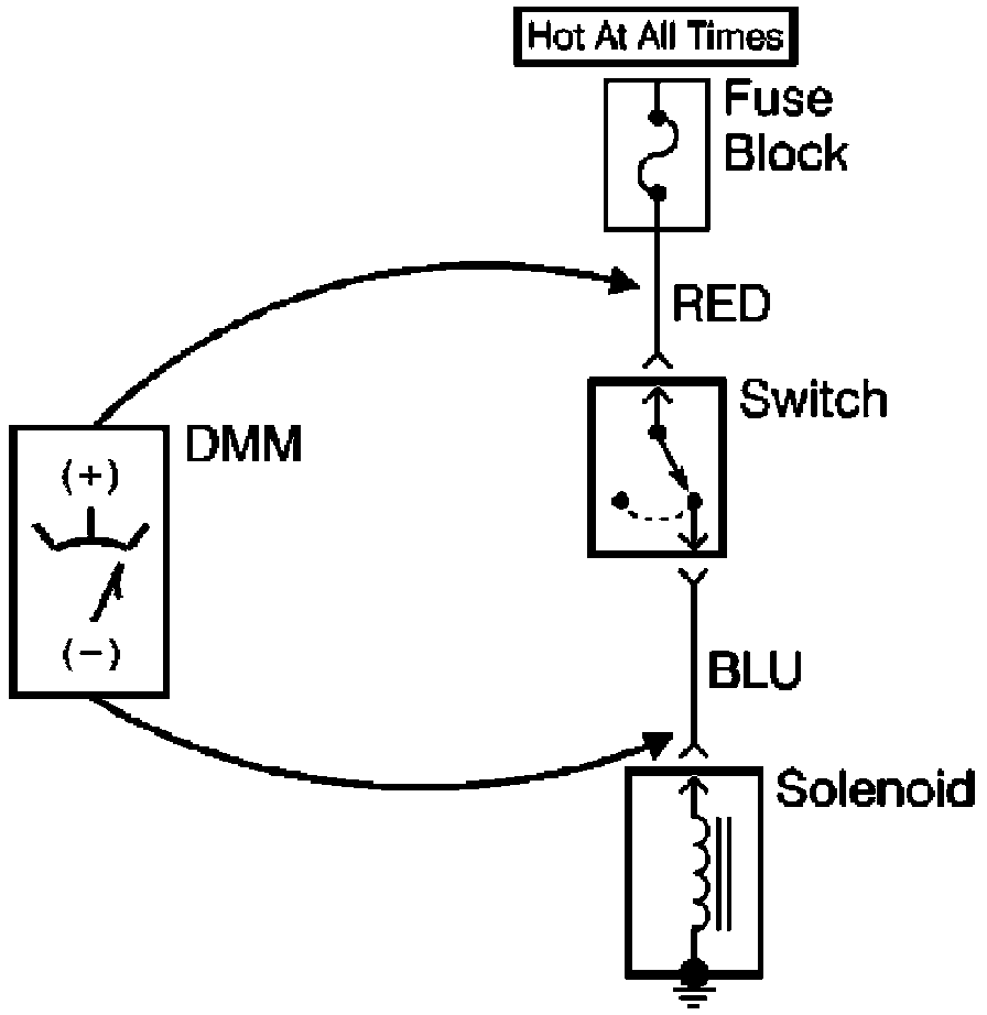 2. Connect the positive lead of the DMM to one point of the circuit to be tested.