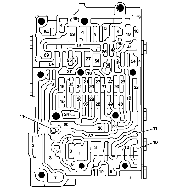 Rear Control Valve Body Assembly Fluid Passages (Middle Control Valve Body Assembly Side)