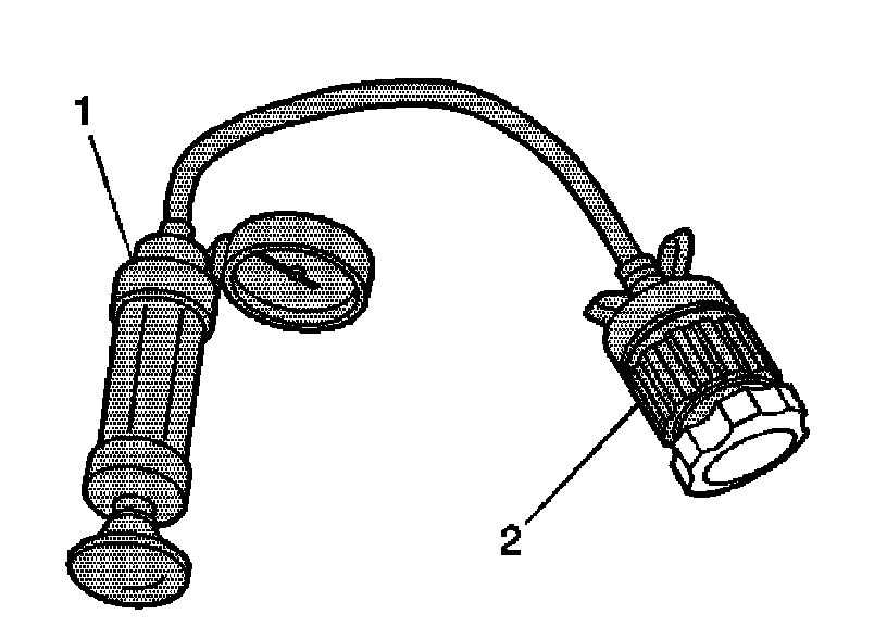 3. Use the J 24460-01 (1) with J 42401 (2) in order to test the pressure cap.