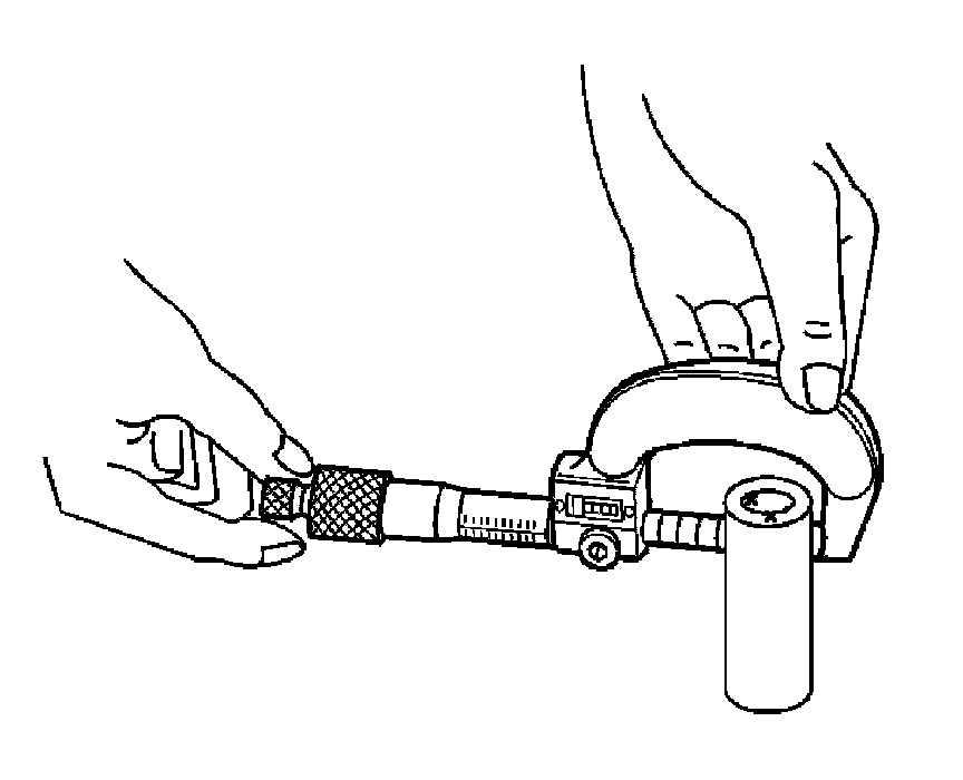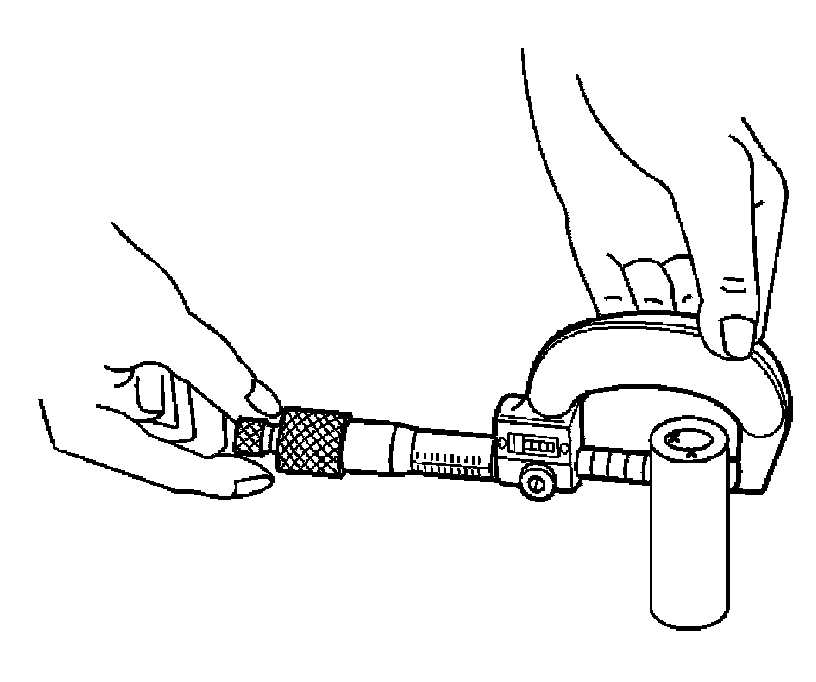 b. Use an outside micrometer to measure the piston pin in the piston contact areas.
