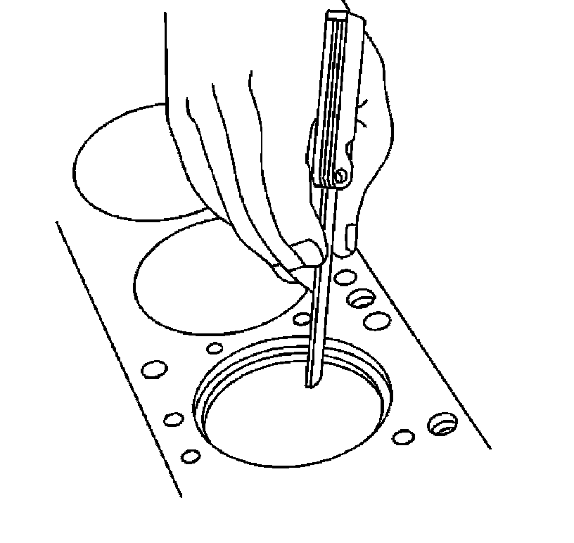 a. Place the piston ring in the area of the bore where the piston ring will travel approximately 25 mm (1 in) down from the deck surface. Ensure that the ring is square with the cylinder bore by positioning the ring with the piston head.