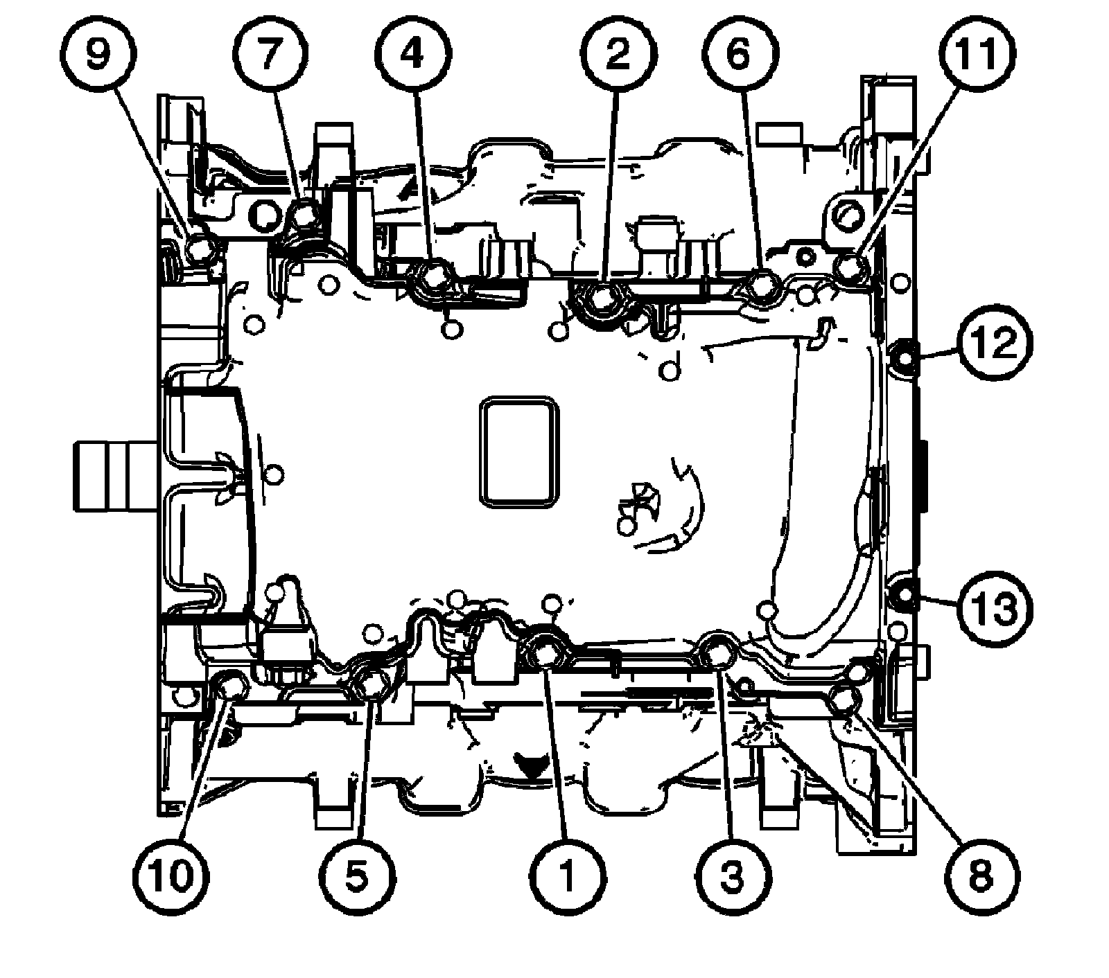 6. Tighten the oil pan bolts in sequence shown.
