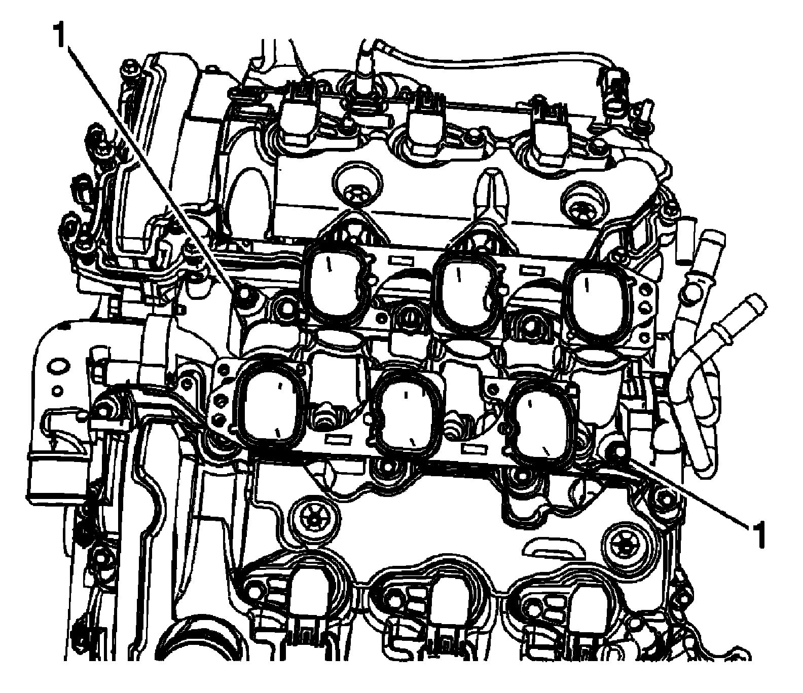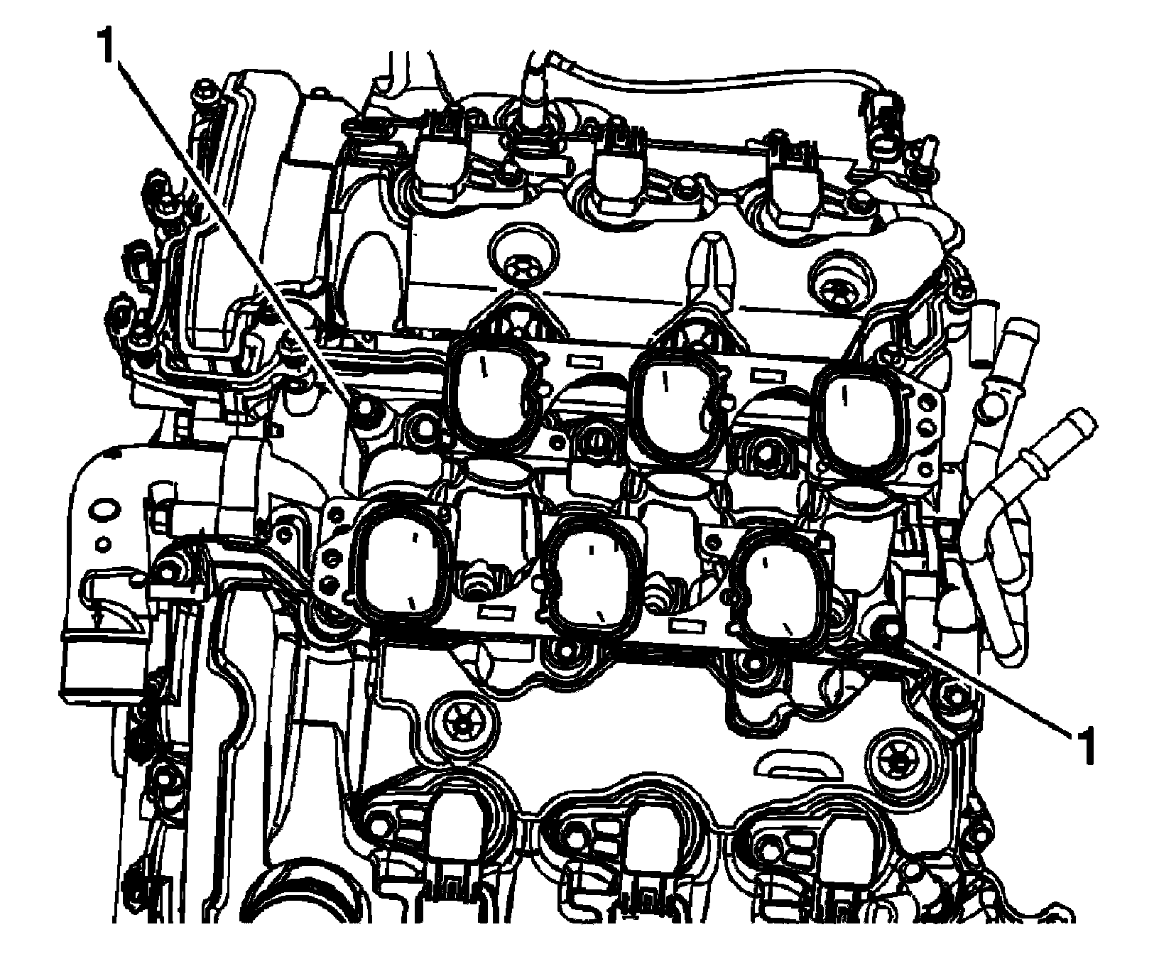 2. Install the lower intake manifold bolts (1).