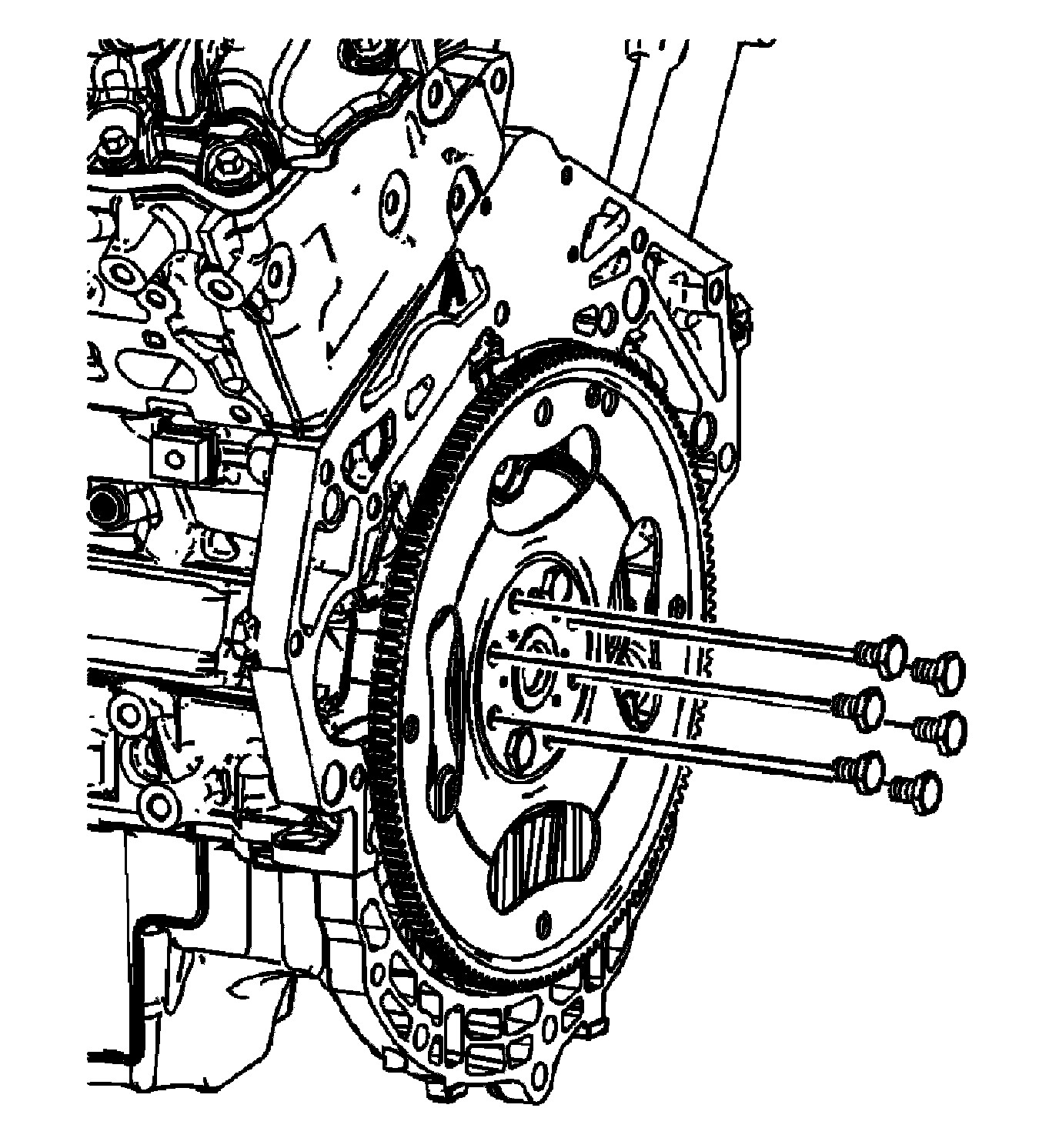 4. Install the remaining NEW engine flywheel bolts.