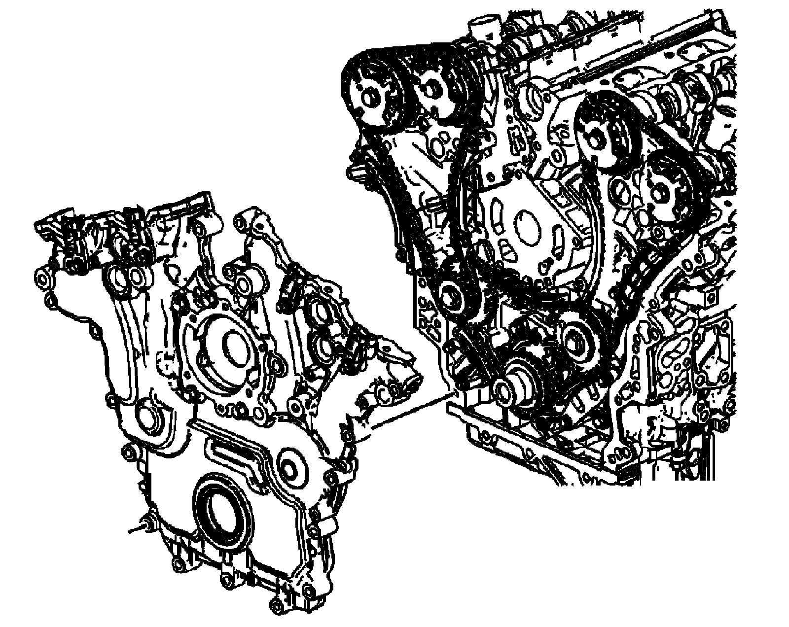 3. Place a 3 mm (0-118 in) bead of RTV sealant, GM P/N 12378521 (Canadian P/N 88901148) or equivalent, on the engine front cover as shown (1).