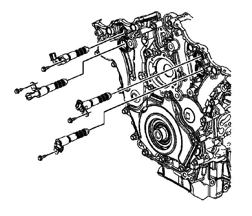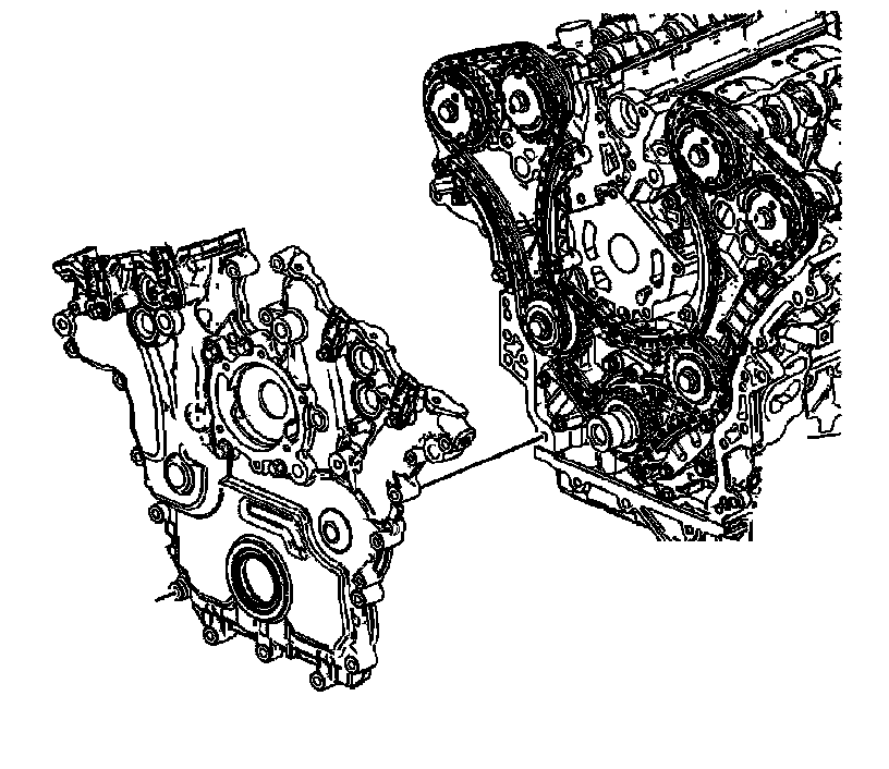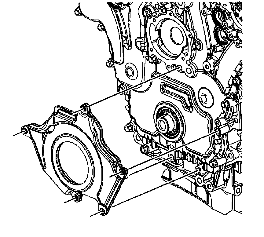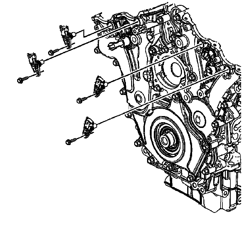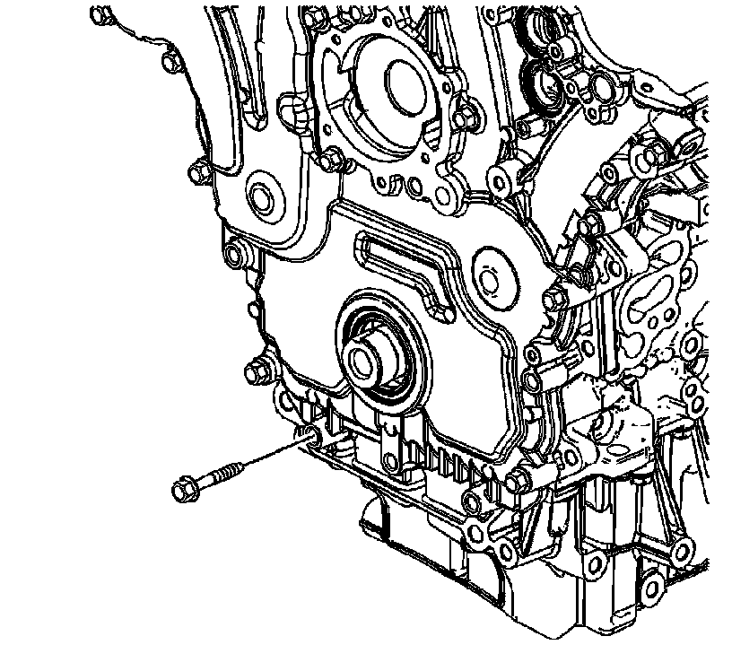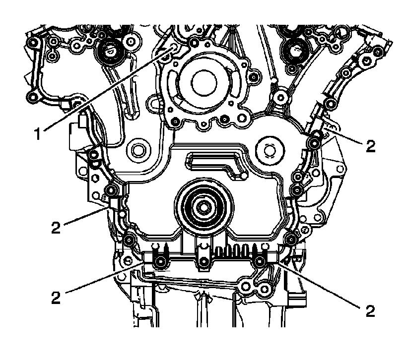 CAUTION: Do not pry between the engine front cover and the camshaft position sensors or the camshaft position actuators in order to shear the RTV. Use the pry points and a bolt in the jackscrew hole in order to remove the engine front cover. Damage to the camshaft position sensors or the camshaft position actuators may occur if the camshaft position sensors or the camshaft position actuators are used to pry against in order to remove the engine front cover.