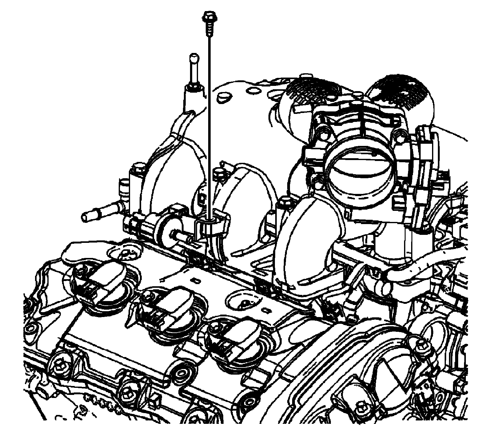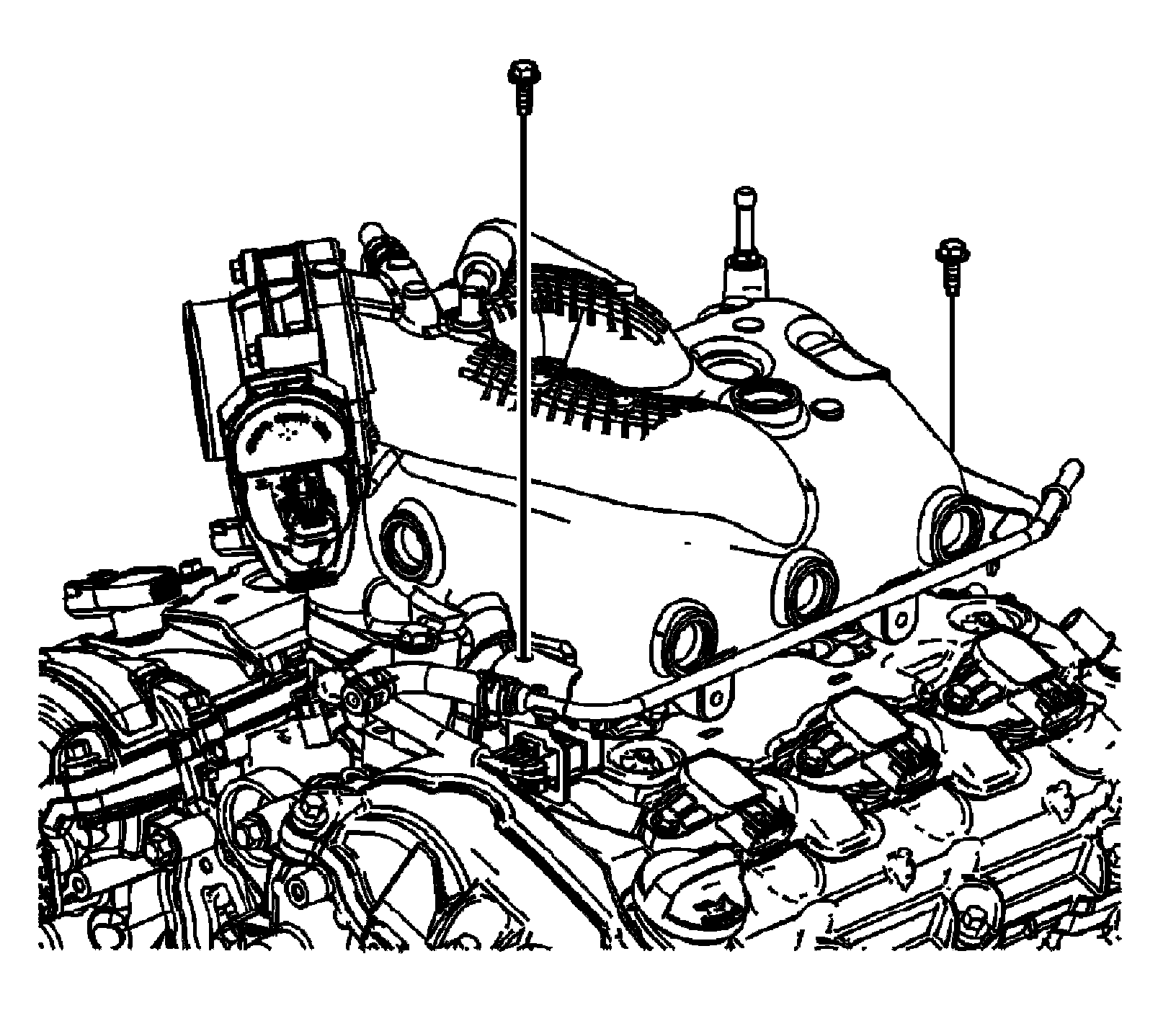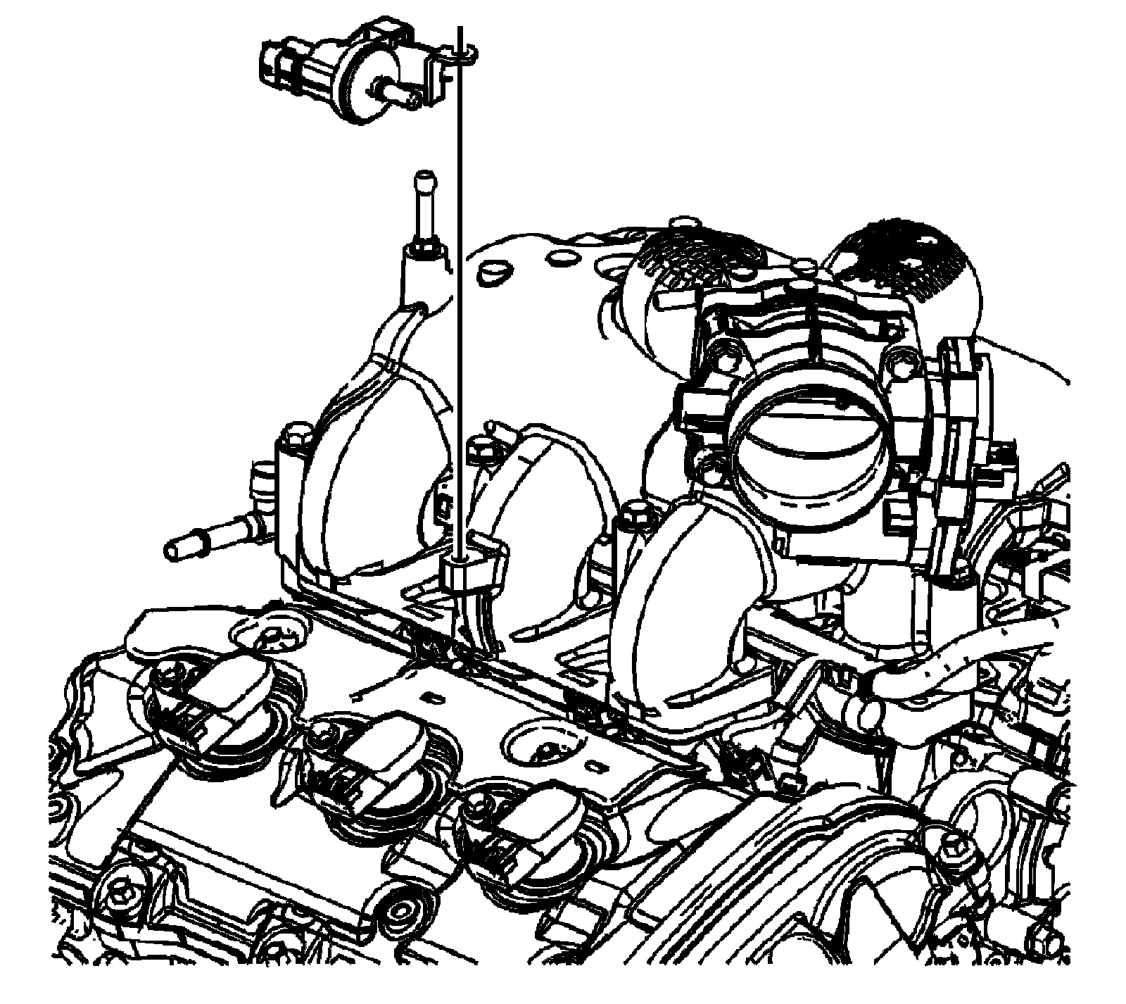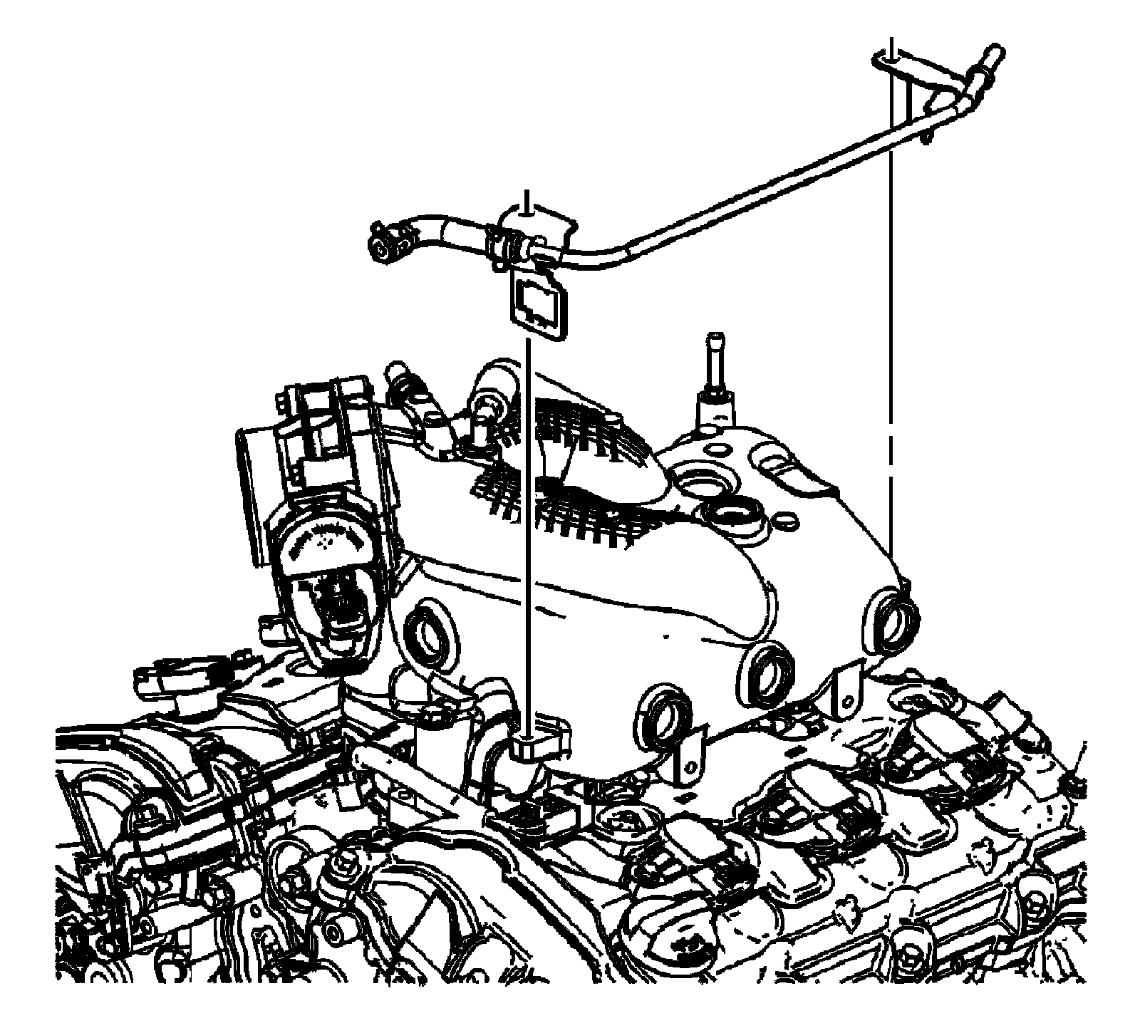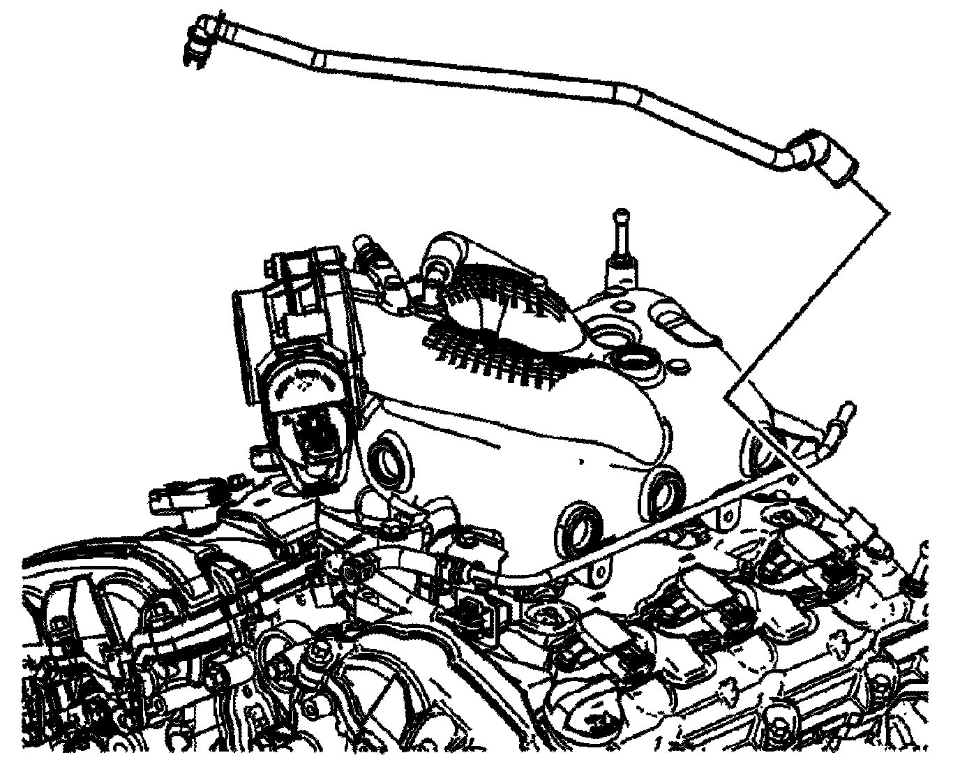 Intake Manifold Removal1. Disconnect and remove the fresh air positive crankcase ventilation (PCV) hose from the left camshaft cover fitting.