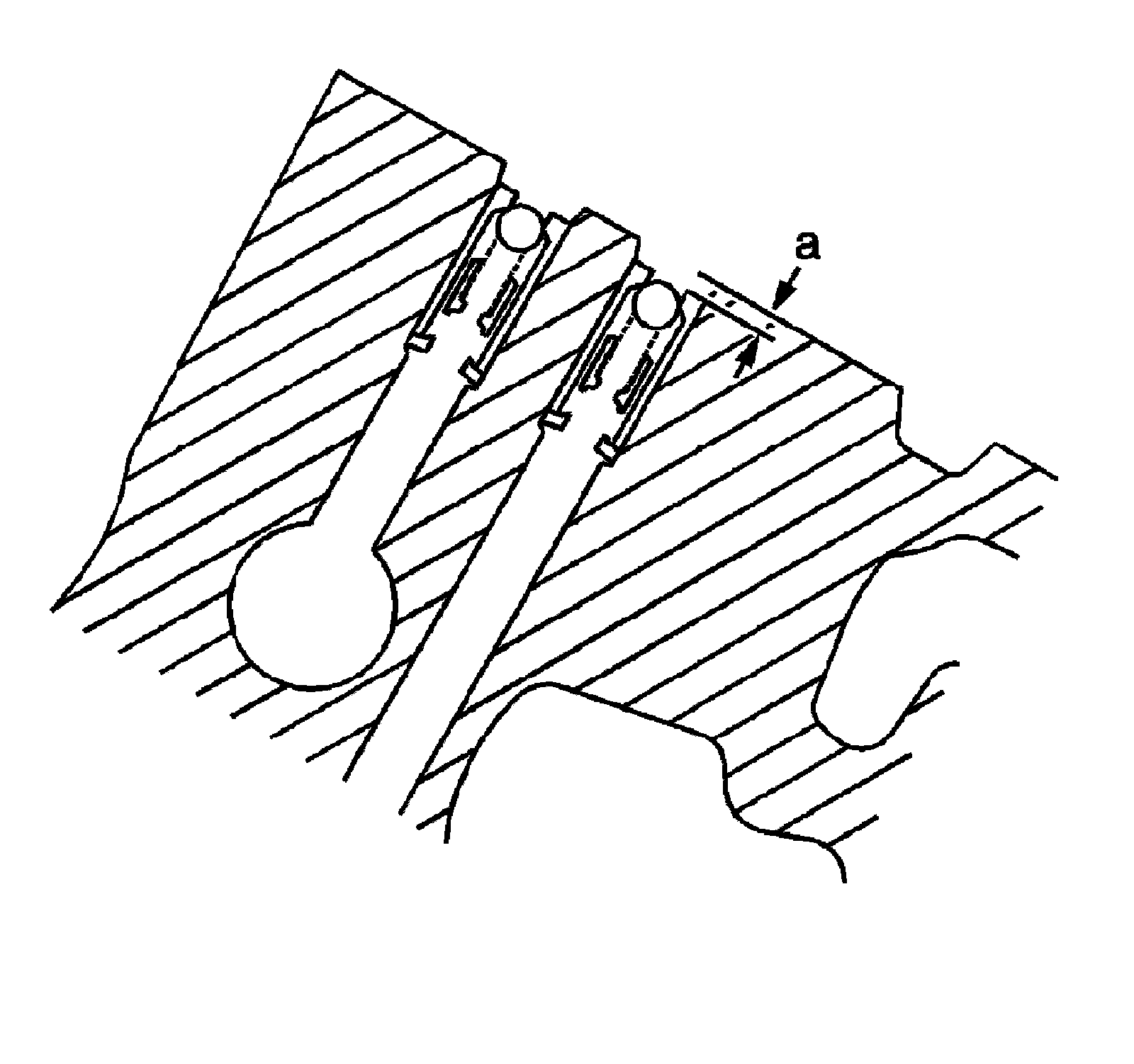 5. Inspect the camshaft position actuator oil feed check valves in order to ensure they are properly positioned in the cylinder head. The camshaft position actuator oil feed check valve should be flush to 2 mm (0.0787 in) below the cylinder head deck surface (a).
