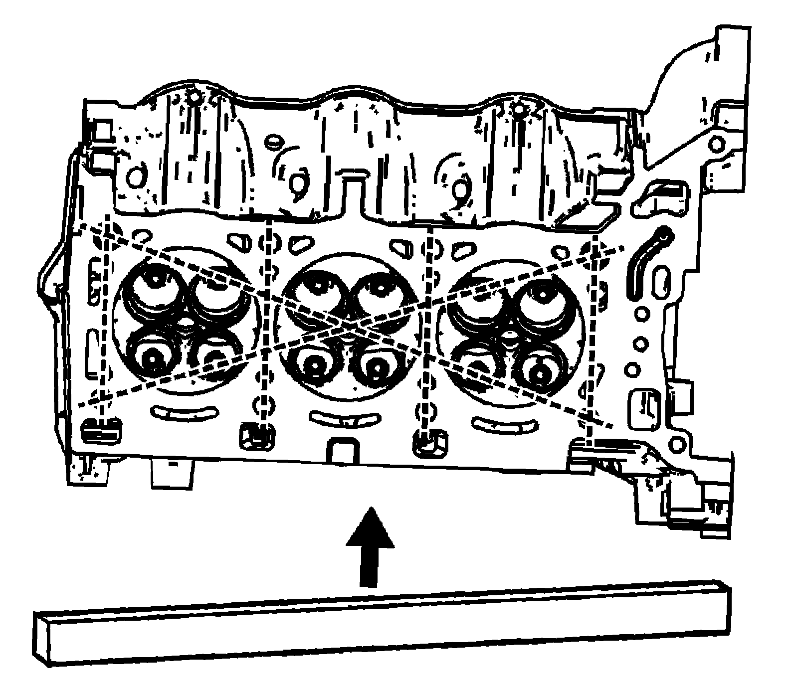 3. Place a straight-edge diagonally across the cylinder head deck face surface.