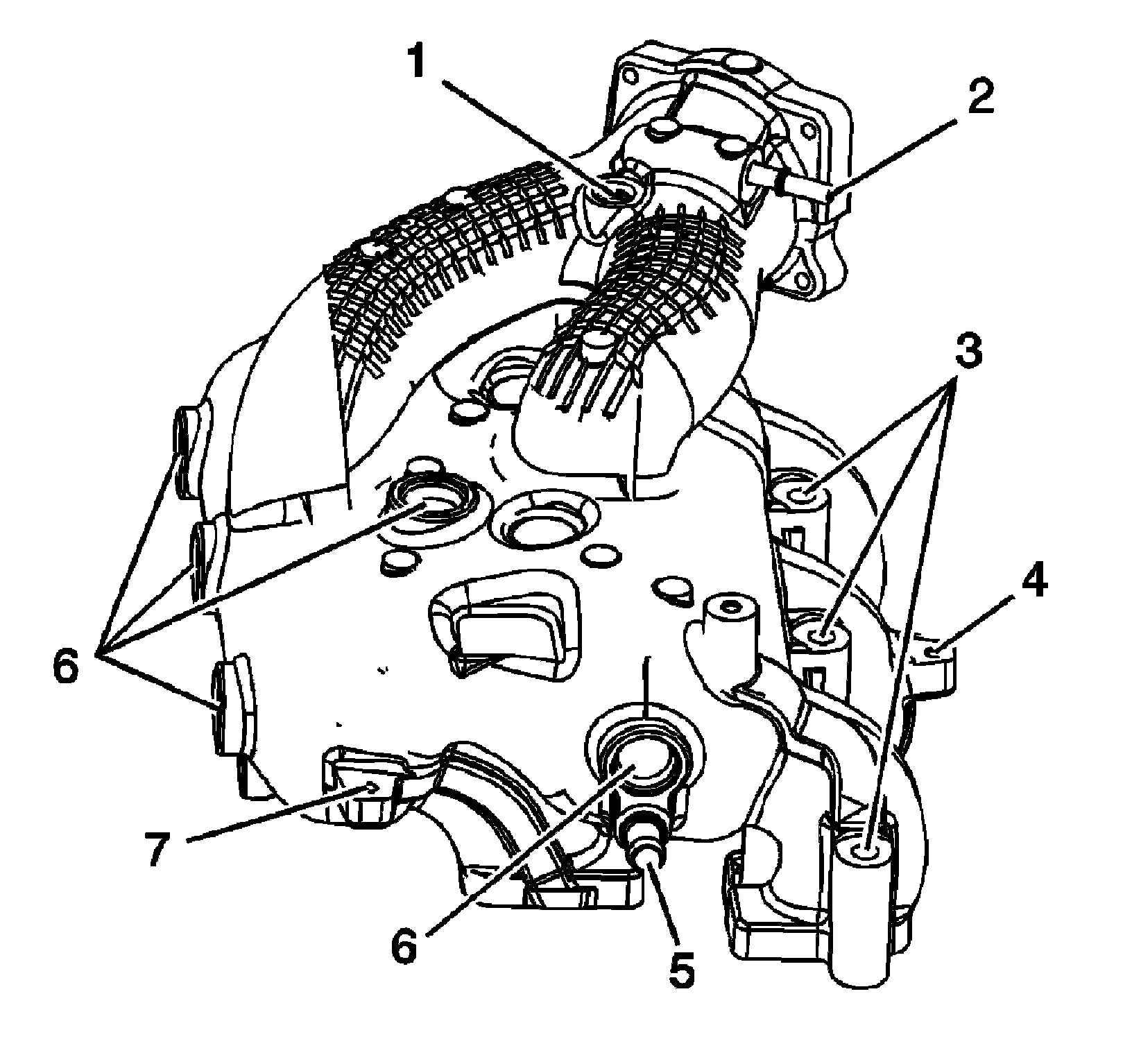 ^ Damage to the engine coolant air bleed pipe bracket mounting boss (7)