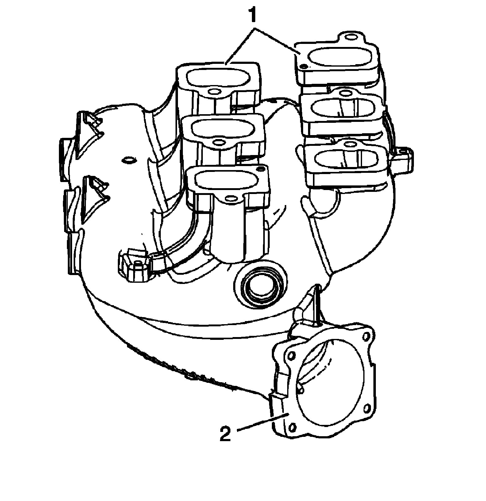 ^ Damage to the gasket sealing surface (2) for the throttle body