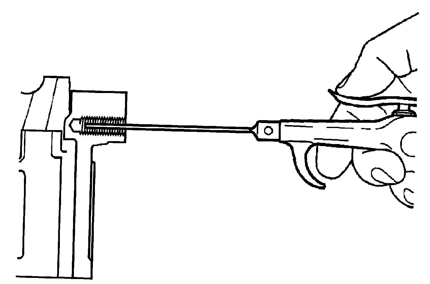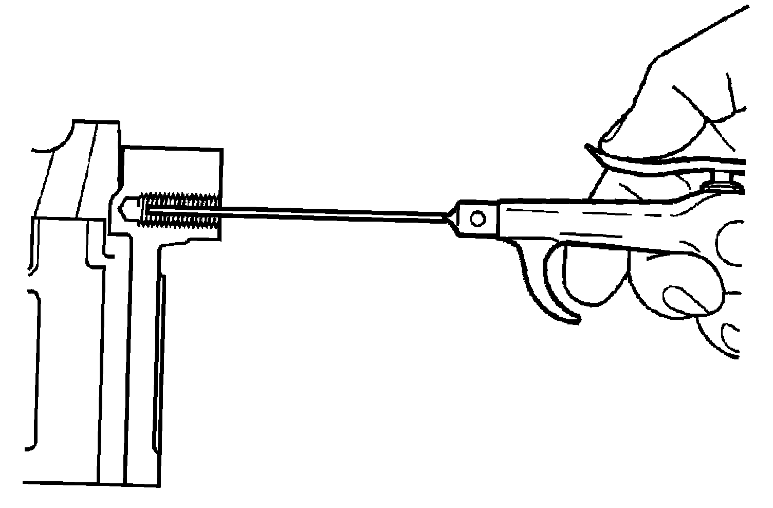6. Spray cleaner GM P/N 12346139, GM P/N 12377981 (Canadian P/N 10953463) or equivalent into the tapped hole.