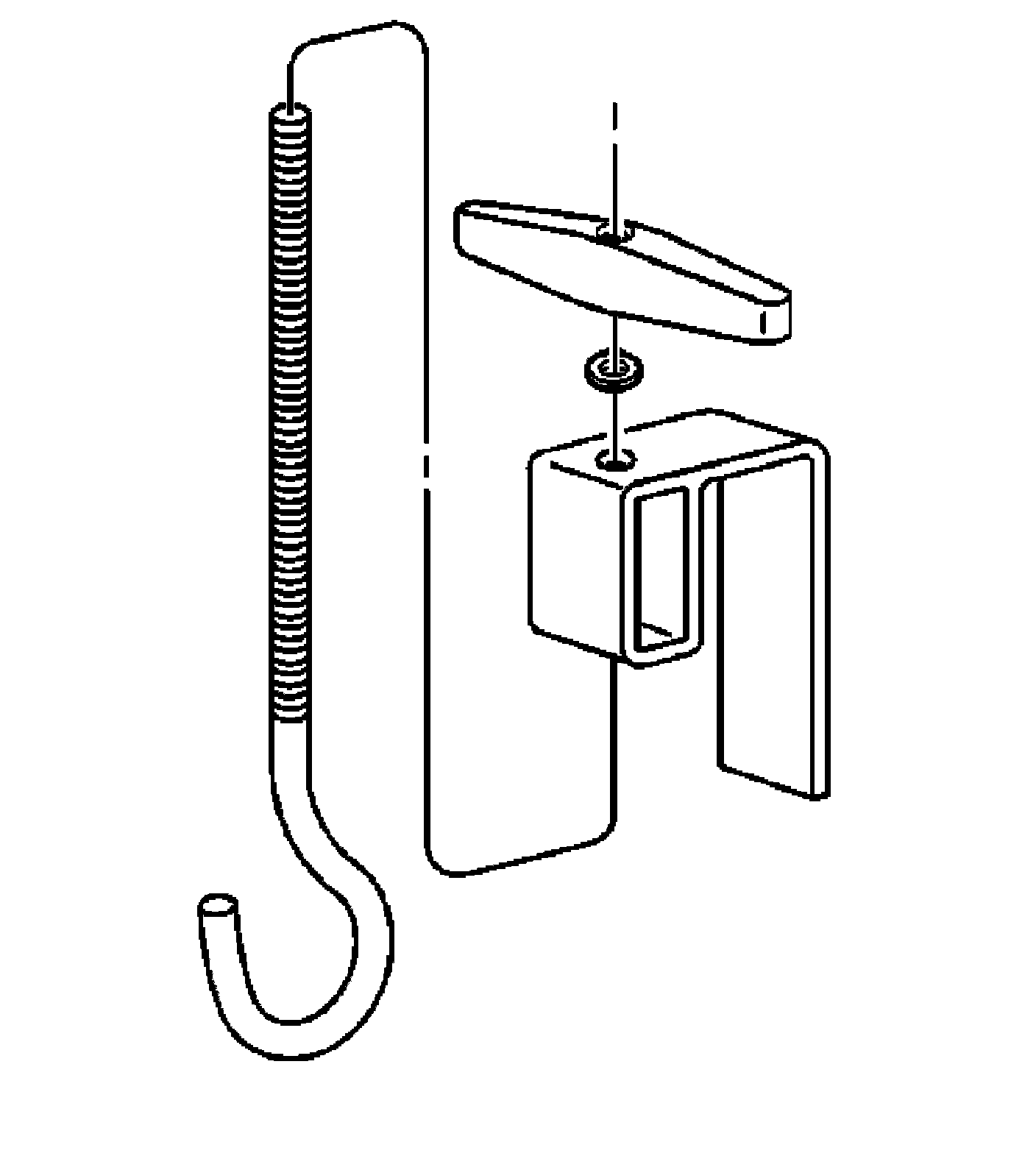 13. Assemble the lift hook wing nut J-28467-34 and the lift hook bracket J-28467-6A to the lift hook J-28467-7A.