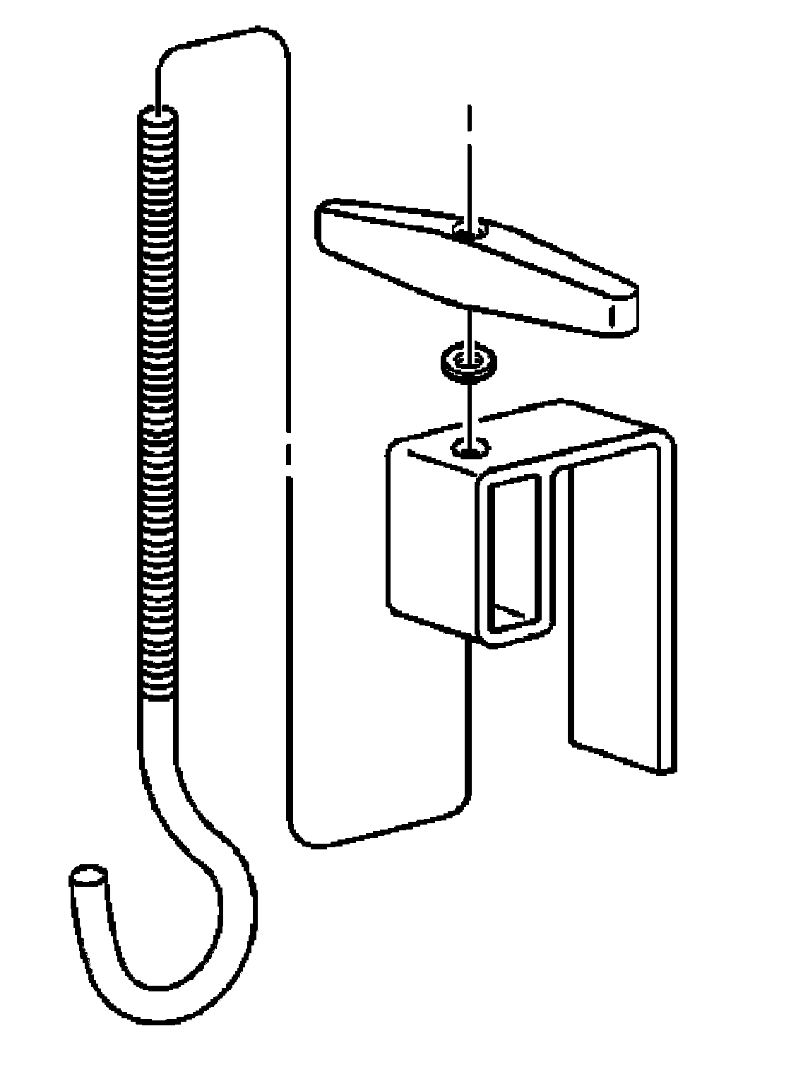 11. Install the lift hook and bracket assembly (1) to the longitudinal mounted cross bar (2).