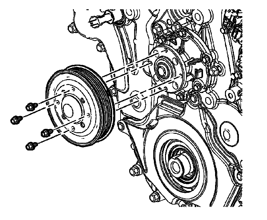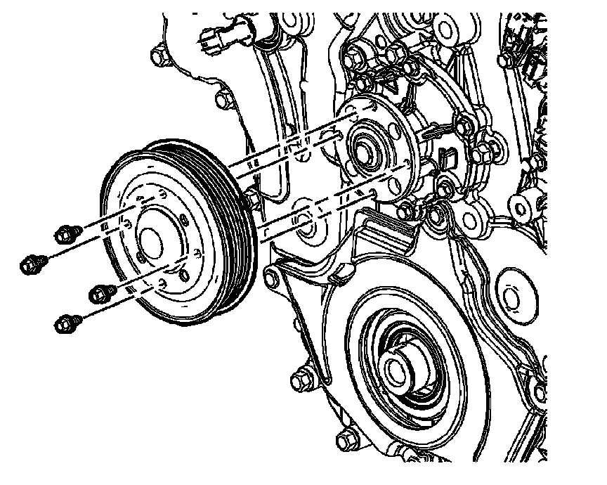 Tighten the water pump pulley bolts to 10 Nm (89 in. lbs.).