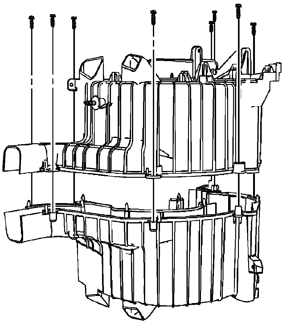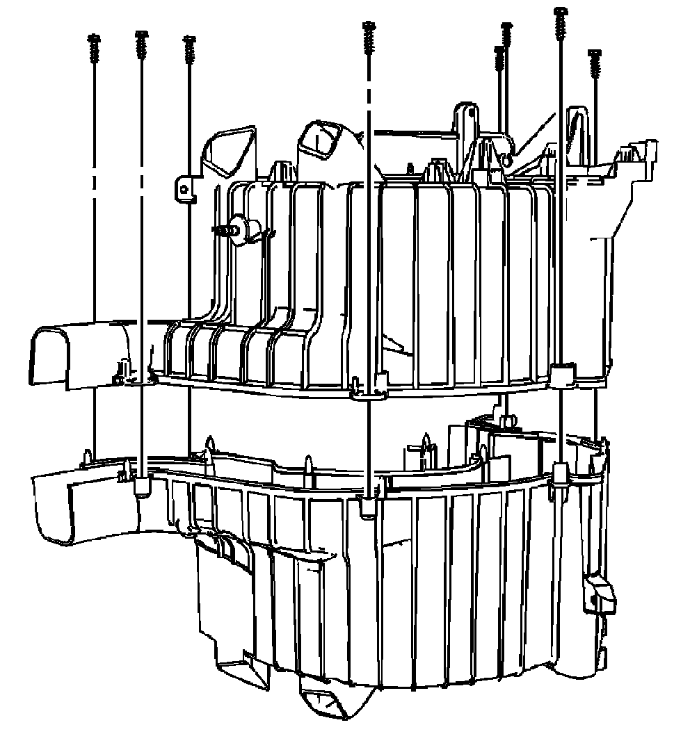 3. Install the screws to retain the evaporator case halves.