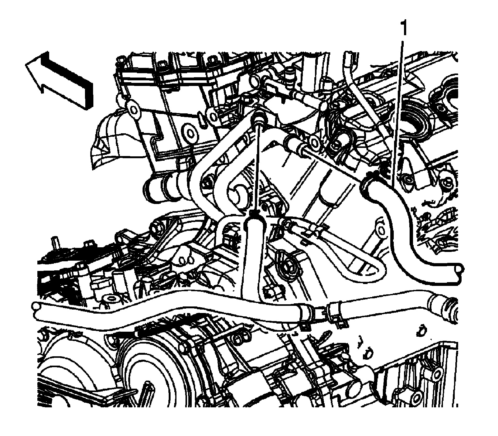 2. Remove the heater pipe inlet hose (1) from the heater inlet pipe.