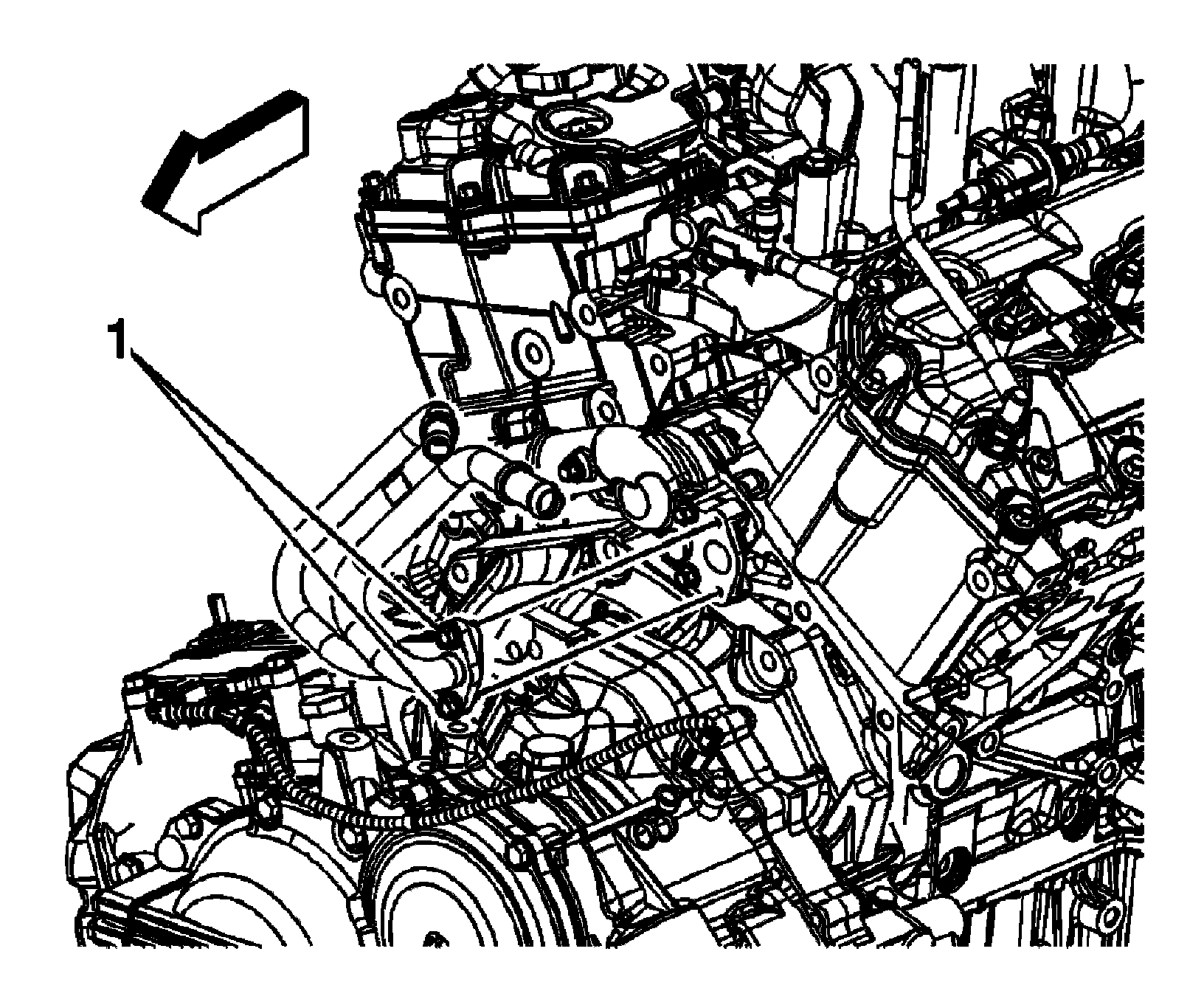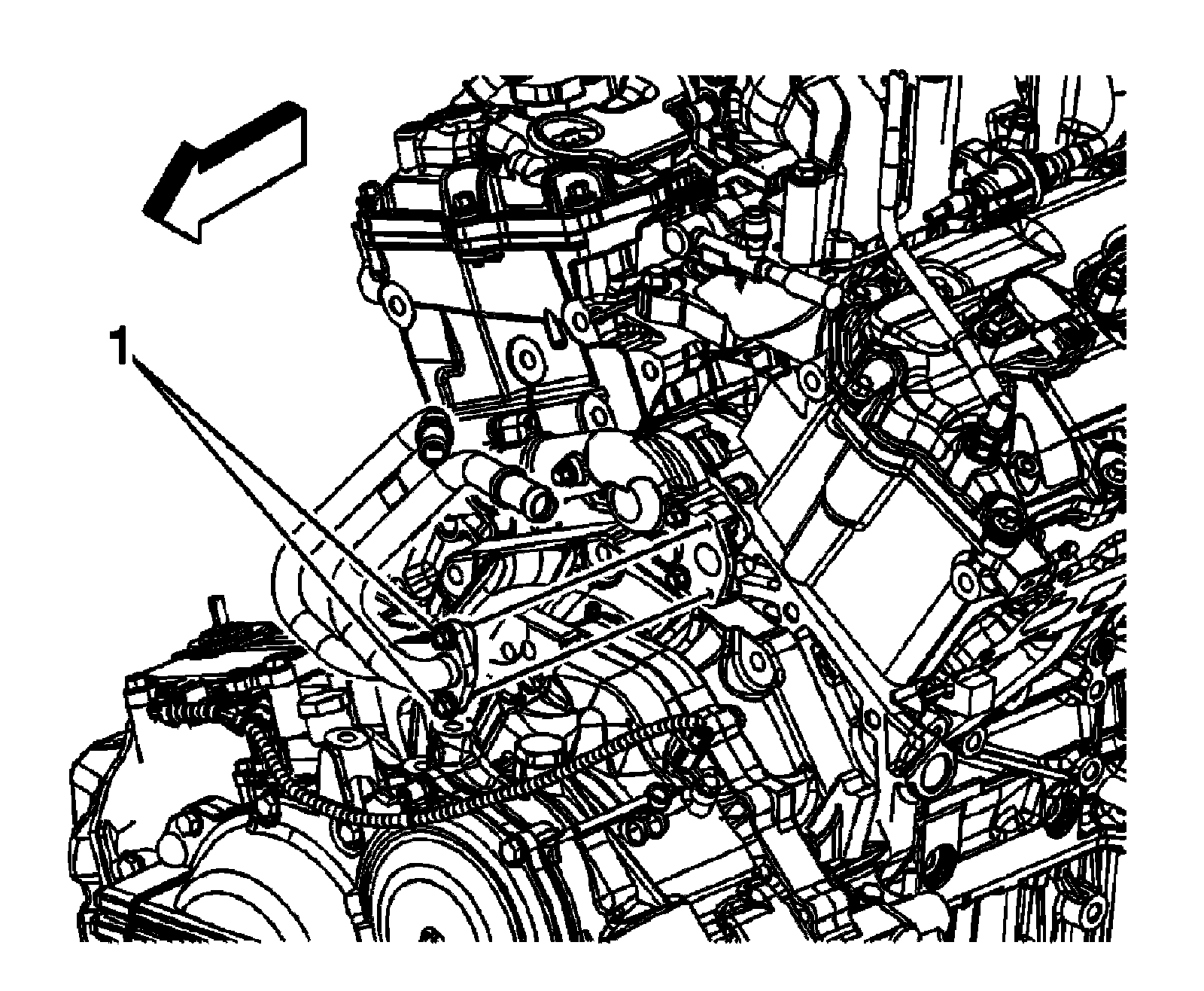 3. Remove the heater inlet pipe housing bolts (1).