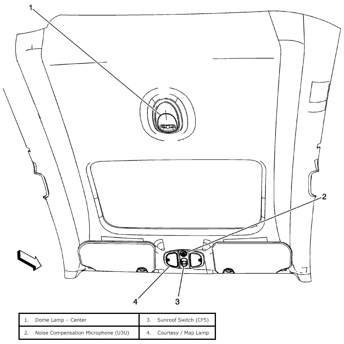 Lighting Systems Component Views - Front Headliner Components:
