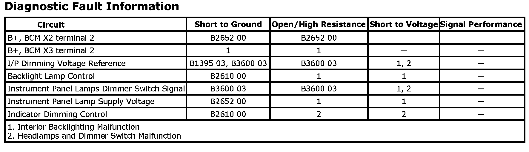 ^ If the scan tool dimmer control operates normal, refer to Interior Backlighting Circuit Test.