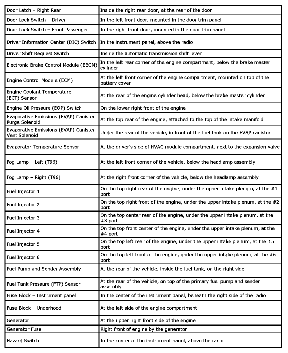 Component Locations