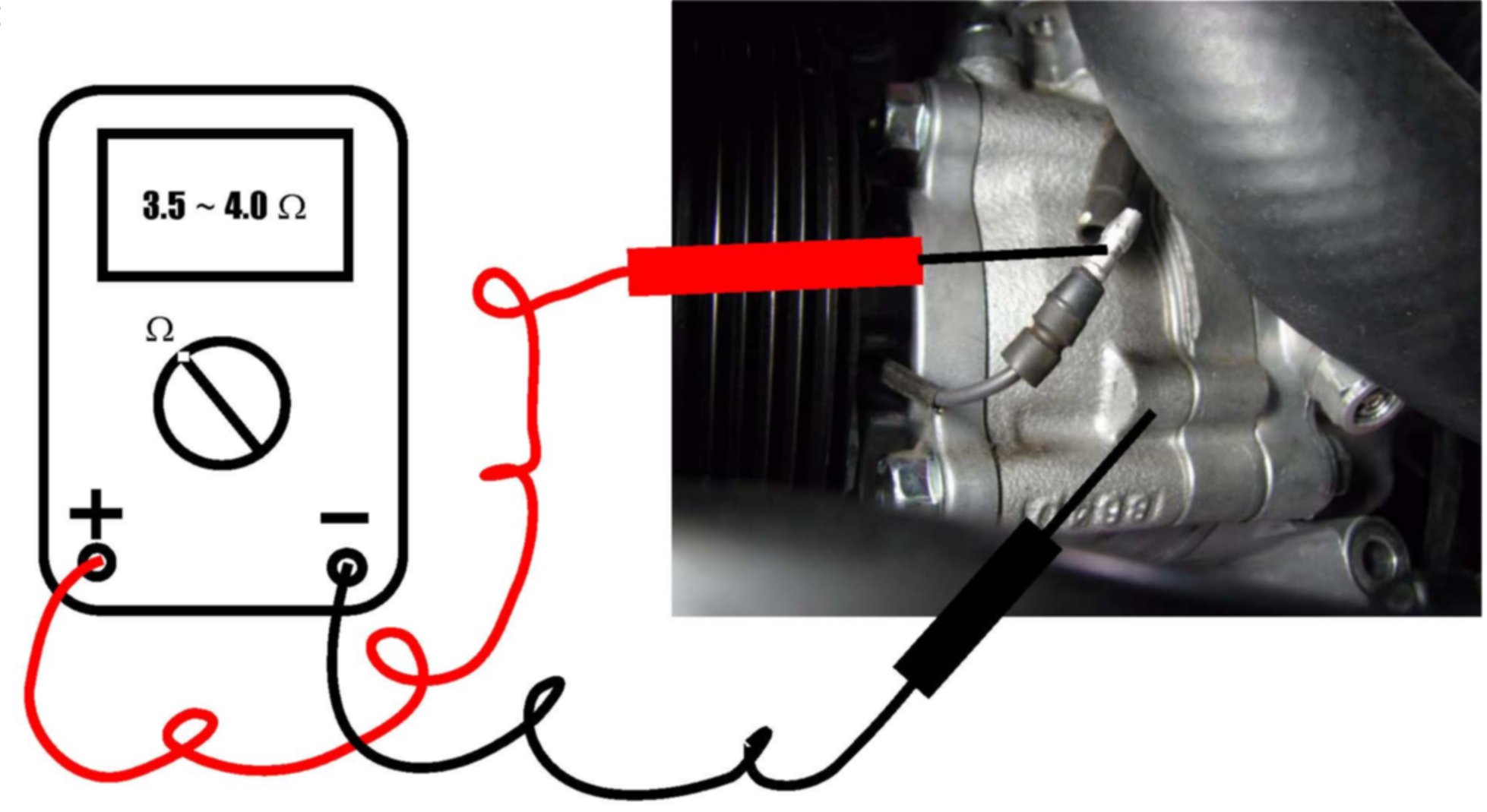 3. Disconnect the electrical connector to the clutch magnet to check the resistance of the clutch circuit. There should be between 3.5 and 4.0 ohms of resistance. If it is OK, follow the service manual for further diagnosis, this bulletin does not apply. If it is not in specification, replace the clutch assembly only. Follow the procedure in TSB SX4 HVAC TS 01 09267 to replace the clutch assembly.