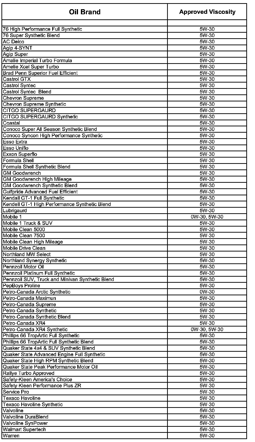 Please see Owners Manual page and the list of GM6094M approved oils above. Use only viscosity recommended in the Owners Manual.