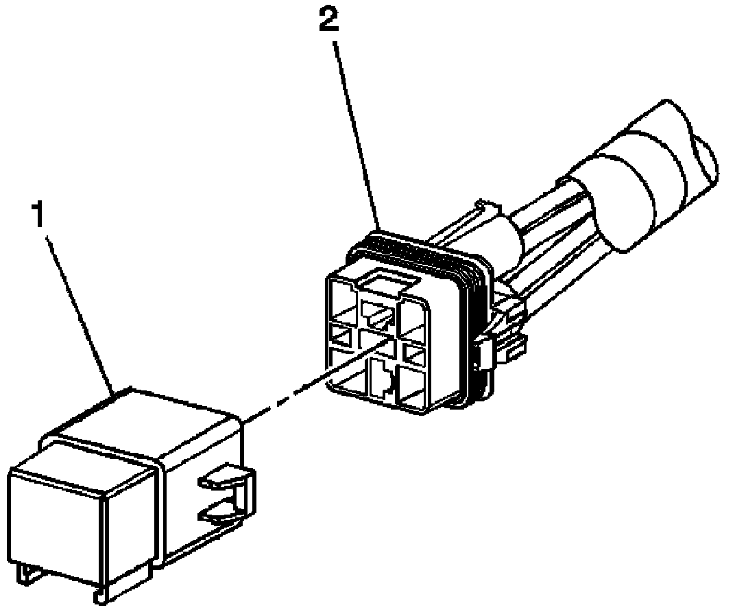 4. Separate the relay (1) from the wire harness connector (2).